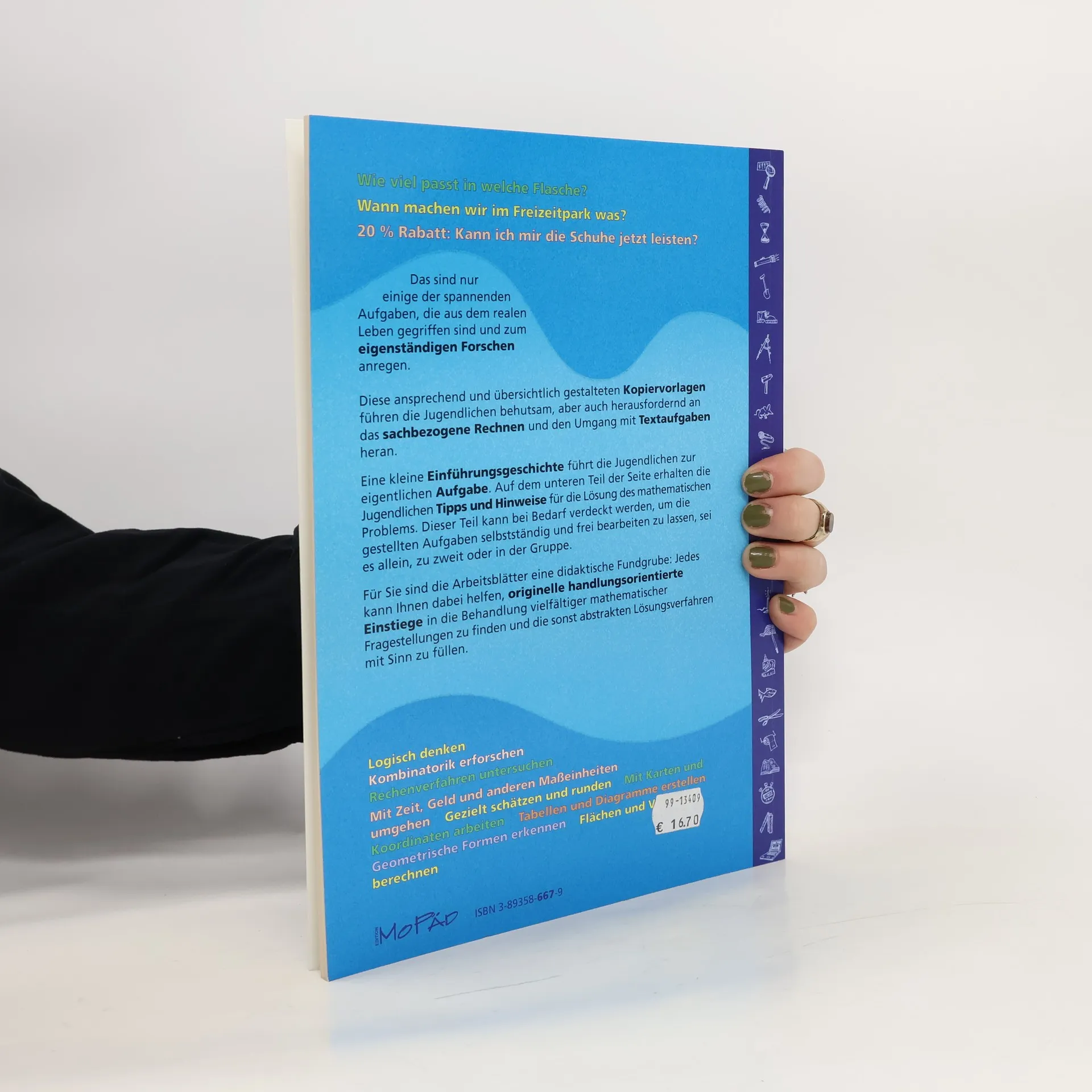 Wie viel passt in welche Flasche? 20% Rabatt: Kann ich mir die Schuhe jetzt leisten? Das sind nur einige der spannenden Aufgaben, die aus dem realen Leben gegriffen sind und zum eigenständigen Forschen anregen. Diese ansprechend und übersichtlich gestalteten Kopiervorlagen führen die Jugendlichen behutsam, aber auch herausfordernd an das sachbezogene Rechnen und den Umgang mit Textaufgaben heran. Am Anfang steht immer ein Sachproblem, das in Form einer kurzen Geschichte geschildert wird. Anschließend folgen die Aufgabe und angedeutete Lösungsstrategien. Eine Erweiterungsaufgabe ergänzt jeweils das Übungsangebot - ideal für schnelle Rechner oder als vertiefende Hausaufgabe.