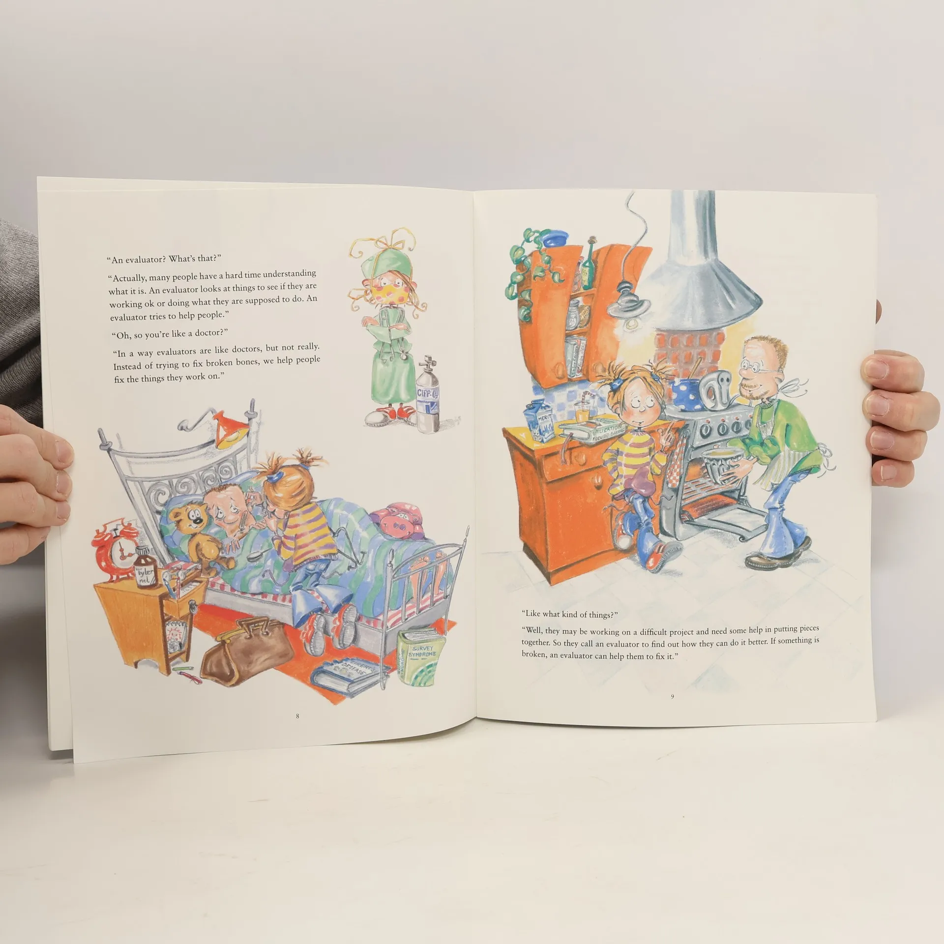 Eva the Evaluator is a story about strengthening the bonds between parent and child. The story revolves around Eva and her father as he explains to her what he does for a living (evaluator). The father answers Eva's questions as she imagines herself engaged in the scenarios being described. Some mischievous characters appear highlighting that evaluation is not without pitfalls.Although a children's picture book, Eva the Evaluator is an effective way of introducing non-evaluators to the ins and outs of the profession.