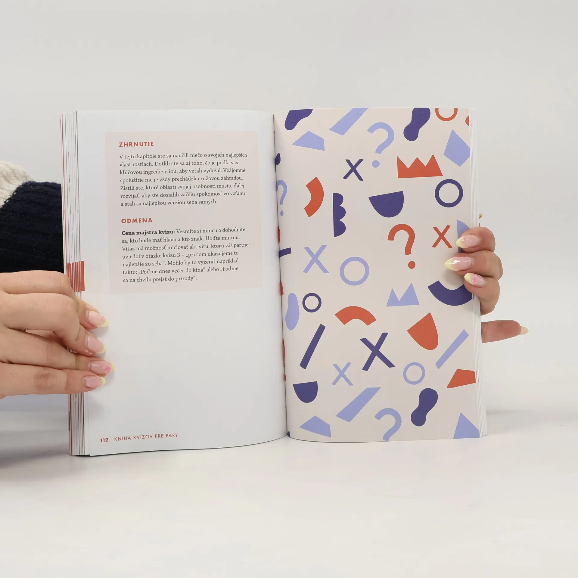 Spoznajte jeden druhého a oživte svoj vzťah. Ak existuje kľúč k harmonickému vzťahu, je ním komunikácia. Či ste spolu štyri mesiace alebo štyridsať rokov, viac než stovka odľahčených otázok v Knihe kvízov pre páry podnieti zmysluplné rozhovory a zapáli iskru. Objavíte o sebe nové veci, lepšie sa spoznáte a dokonca sa pri tom aj zabavíte. Spomeňte si na svoju minulosť, ponorte sa hlbšie do prítomnosti a vybudujte si šťastnú spoločnú budúcnosť. Otázky v tejto knihe postupujú od základných až k takým, pri ktorých sa budete musieť skutočne zamyslieť. Sú vhodné pre partnerov, ktorí sa ešte len spoznávajú, ale aj tých, ktorí si myslia, že sa už dokonale poznajú.