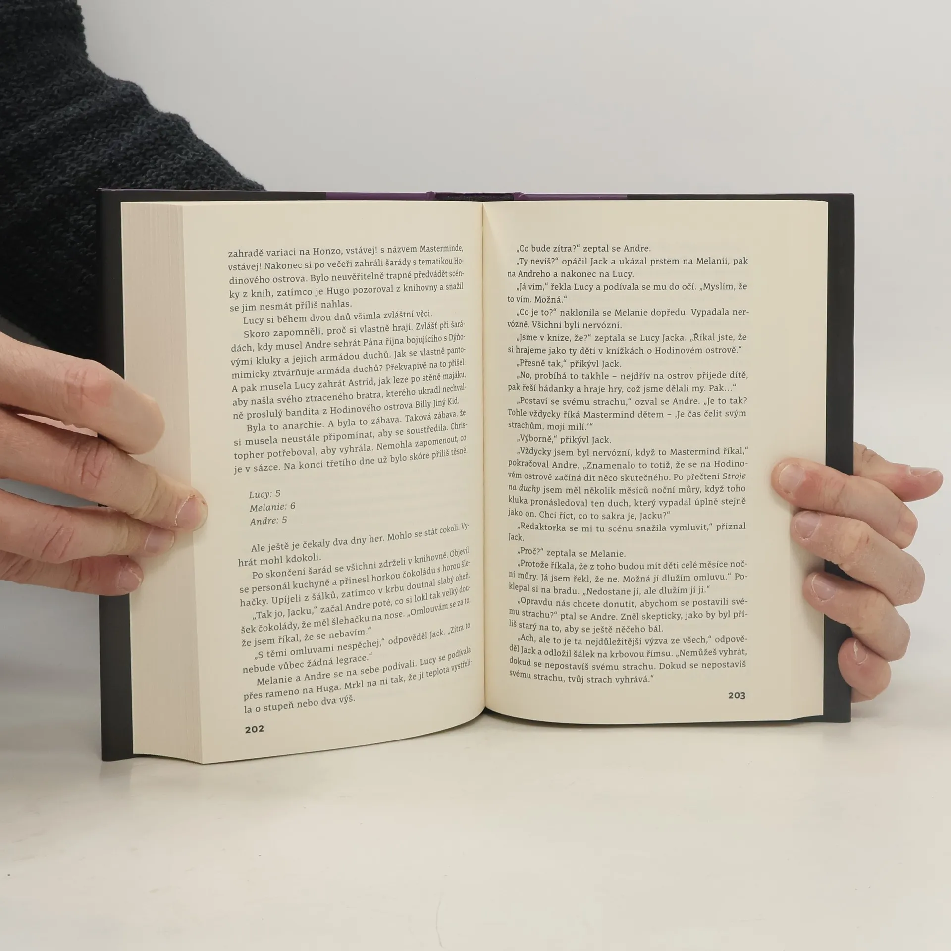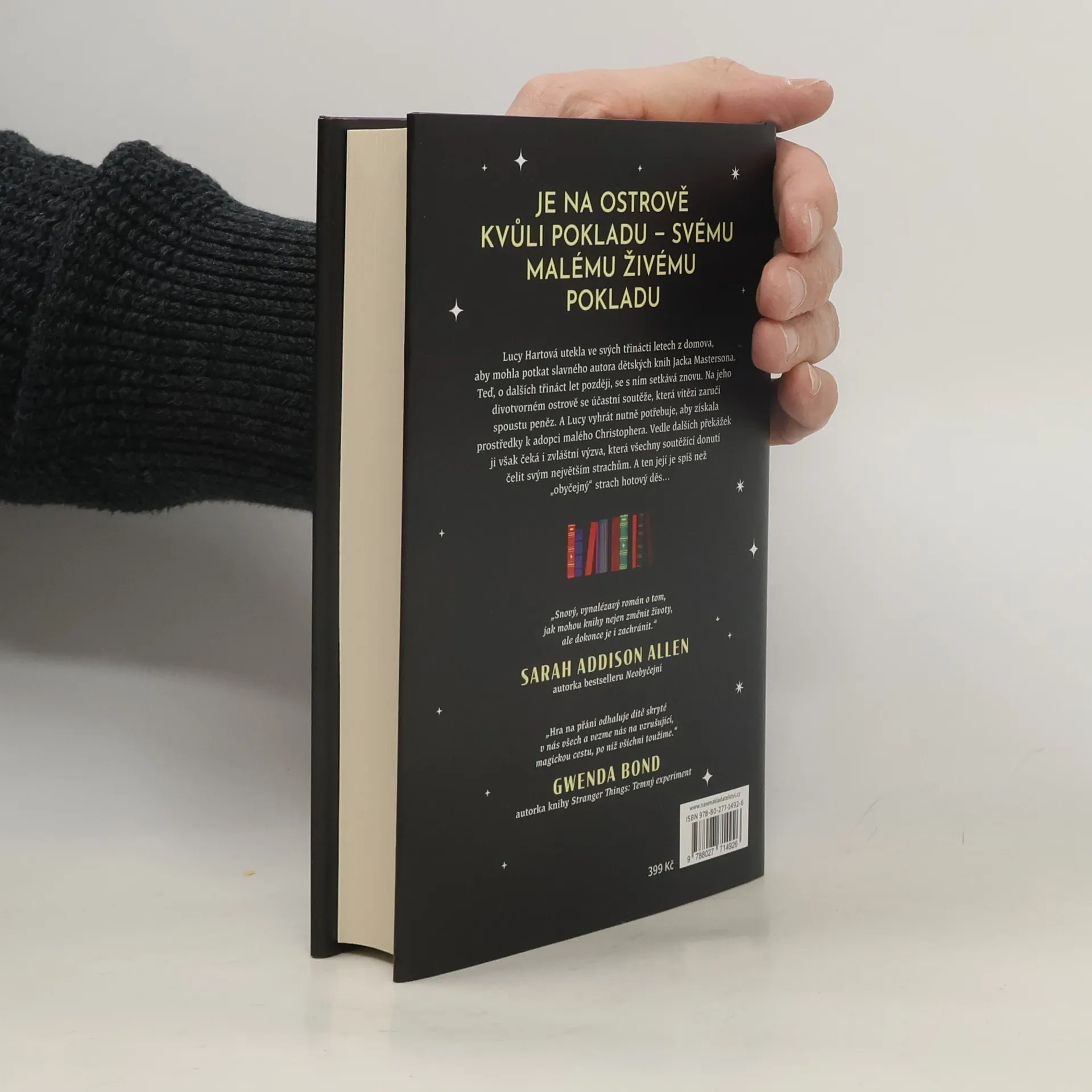 Hřejivý příběh plný narážek na knihy. Populární autor ukrytý na ostrově vyhlásí hru pro své nejvěrnější fanoušky. Dávejte si pozor na to, co si přejete. Lucy Hartová ví lépe než kdokoli jiný, jaké je vyrůstat bez milujících rodičů. V dětství byla osamělá a zanedbávaná a útěchu nacházela v knihách, především v sérii knížek z Hodinového ostrova od Jacka Mastersona. Teď je jí šestadvacet, pracuje jako asistentka učitele a svou lásku ke knihám předává svým žákům, mezi nimiž je i sedmiletý osiřelý Christopher, který žije u pěstounů. Lucy by udělala cokoliv pro to, aby ho mohla adoptovat, ale zdá se, že pokud nebude mít dost peněz, chlapce jí nikdo nesvěří. Lucy už se málem vzdává, když Jack Masterson nečekaně oznámí, že po letech napsal další knihu, a navíc vyhlásí soutěž, která se má konat v jeho domě na Hodinovém ostrově. Nakladatelská anotace. Kráceno.