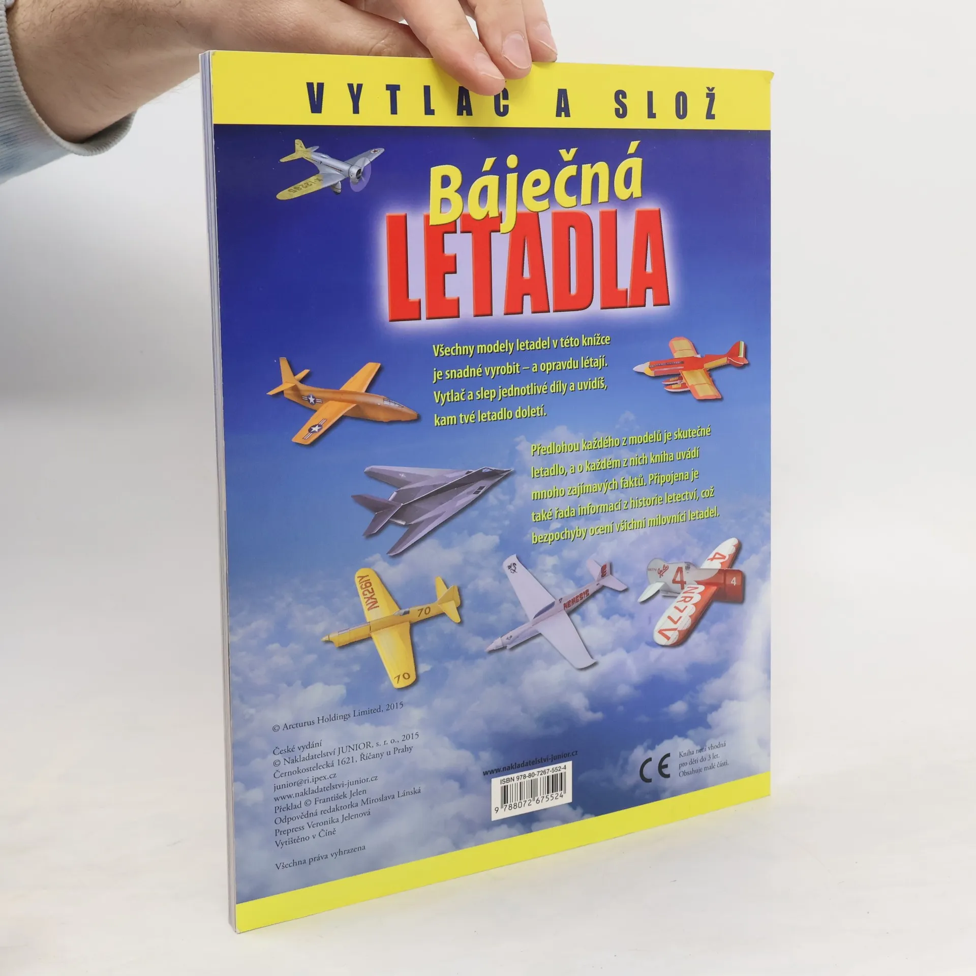 V sérii Vytlač a slož vychází kniha s modely letadel. Všech 18 modelů letadel je snadné vyrobit - a opravdu létají. Vytlač a slep jednotlivé díly a uvidíš, kam tvé letadlo doletí. Předlohou každého z modelů je skutečné letadlo, a o každém z nich kniha uvádí mnoho zajímavých faktů. Připojena je také řada informací z historie letectví, což bezpochyby ocení všichni milovníci letadel. Kniha je určena čtenářům od 8 let.