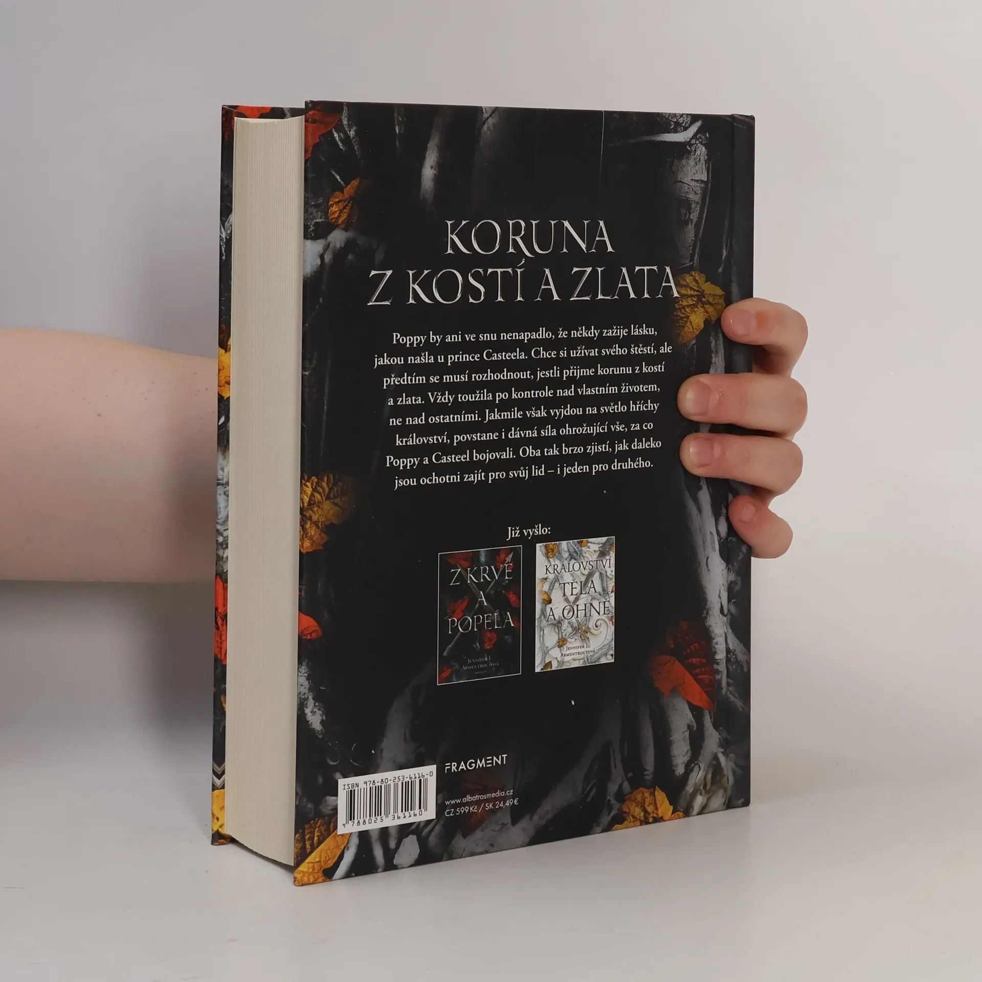 Pokloňte se své královně, nebo před ní vykrvácejte. Třetí díl bestsellerové fantasy série. Poppy by ani ve snu nenapadlo, že někdy zažije lásku, jakou našla u prince Casteela. Chce si užívat svého štěstí, ale předtím se musí rozhodnout, jestli příjme korunu z kostí a zlata. Vždy toužila po kontrole nad vlastním životem, ne nad ostatními. Jakmile však výjdou na světlo hříchy království, povstane i dávná síla ohrožující vše, za co Poppy a Casteel bojovali. A tak brzo zjistí, jak daleko jsou ochotni zajít pro svůj lid - i jeden pro druhého.