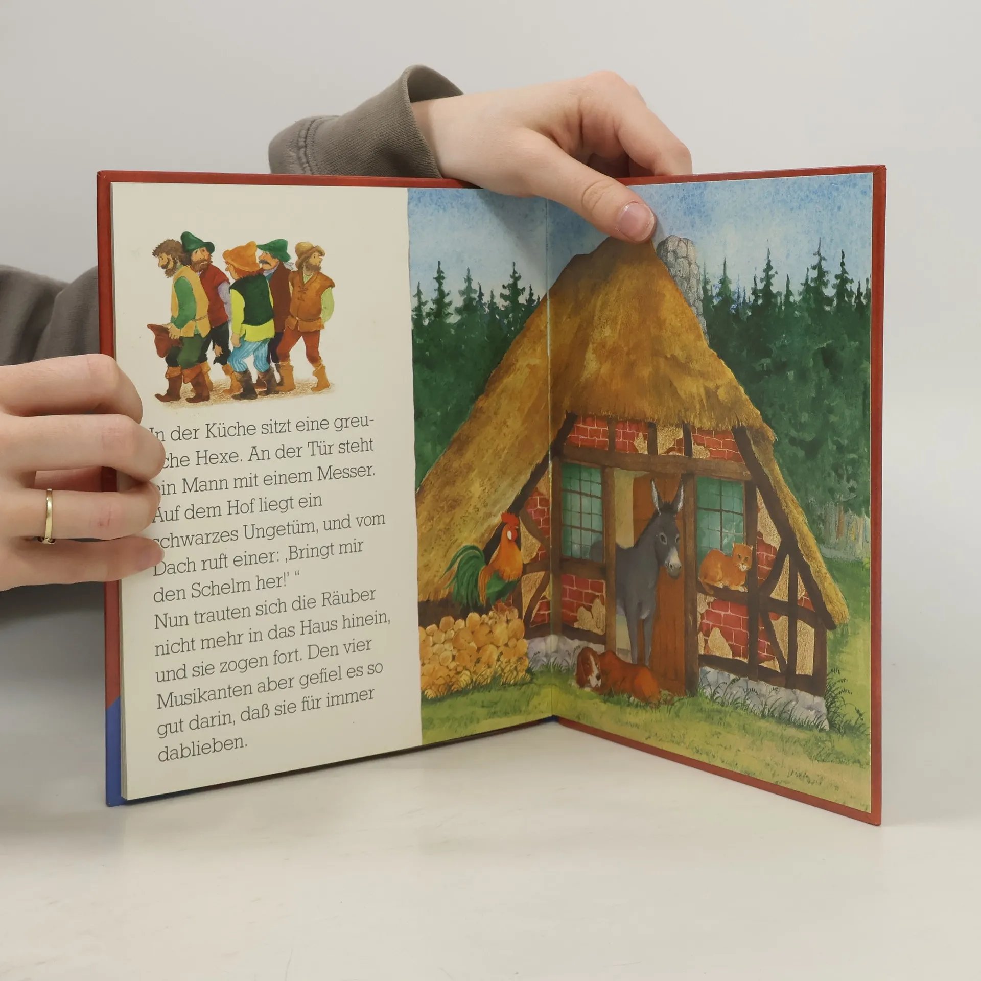 Ein alter Esel ist seinem Herrn nicht mehr nützlich und wird mit dem Tode bedroht. Also macht er sich auf nach Bremen, um dort Stadtmusikant zu werden. Auf seinem Weg trifft er eine Katze, einen Hund und einen Hahn, denen alle das gleiche Schicksal droht und die sich ihm anschließen