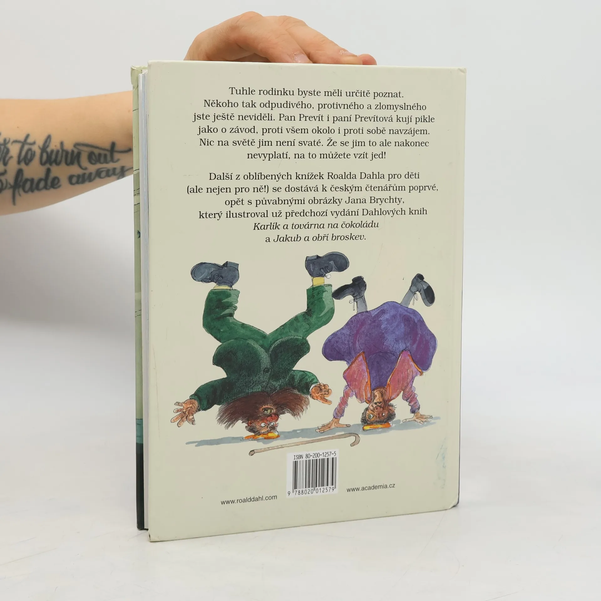 Tuhle rodinku byste měli určitě poznat. Někoho tak odpudivého, protivného a zlomyslného jste ještě neviděli. Pan Prevít i paní Prevítová kují pikle jako o závod, proti všem okolo i proti sobě navzájem. Nic na světě jim není svaté. Že se jim to ale nakonec nevyplatí, na to můžete vzít jed! Další z oblíbených knížek Roalda Dahla pro děti (ale nejen pro ně!) se dostává k českým čtenářům poprvé, opět s půvabnými obrázky Jana Brychty, který ilustroval už předchozí vydání Dahlových knih Karlík a továrna na čokoládu a Jakub a obří broskev.