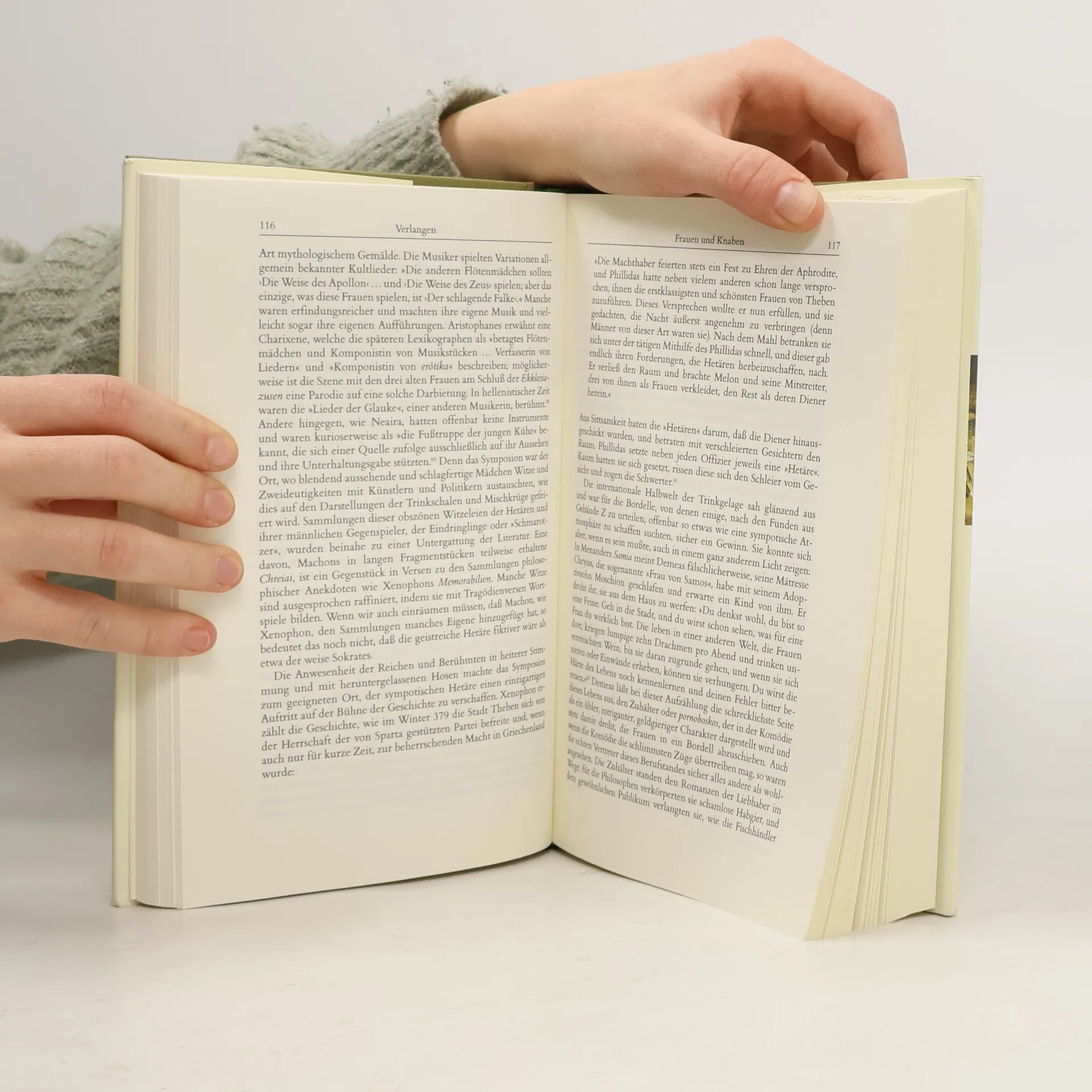 Warum haben die Helden der Homerischen Epen keinen Fisch gegessen, und warum waren Fische und Meeresfrüchte in klassischem Athen Luxus? Was geschah im „Männerraum“ des Symposions, wenn die Regeln gebrochen wurden? Welche Rolle spielten die berühmten Hetären im Kontext von Fest und Genuss? James N. Davidson, Althistoriker an der University of Warwick, geht diesen Fragen detailliert nach. Anhand von Komödien, politischen Reden, Vasen und anderen Artefakten bietet er eine amüsante und tiefgründige Untersuchung des Alltagslebens im klassischen Athen. Besonders interessiert ihn die Sprache der Athener über Essen und Trinken sowie das Verhältnis von Selbstbeherrschung und Zügellosigkeit. Die Haltung des Einzelnen gegenüber Genuss ist politisch: Der verschwenderische Erbe kann zum Tyrannen werden, der die Demokratie bedroht. Auch der Vorwurf, im Privaten das Maß überschritten zu haben, konnte Karrieren gefährden. Dies gilt ebenso für Sexualität, die Davidson in Bezug auf Foucaults These der Unterwerfung „im Zeichen des Phallus“ analysiert. Er zeigt, dass Sexualität im klassischen Athen komplexer war, als moderne Vorstellungen vermuten lassen. Davidson bringt die Perspektiven ins Gleichgewicht und bietet Geschichtsschreibung, die uns sowohl über die Antike als auch über uns selbst lehrt.