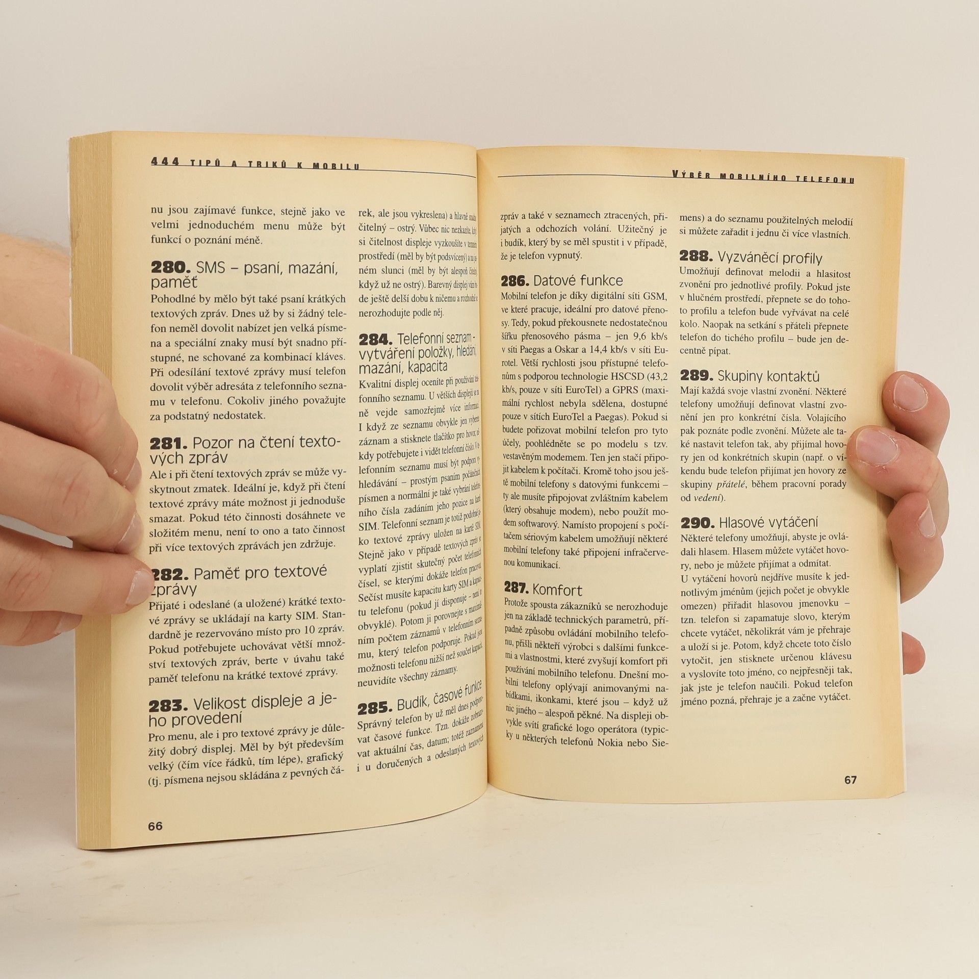 Mobilní telefonování nám nejen zjednodušilo komunikaci, ale přineslo i mnoho dalších vymožeností, na které nás při volání z pevného telefonu nenapadlo ani pomyslet. A pohříchu, nevíme o nich často ani nyní, několik let poté, co se mobilní telefony staly samozřejmou součástí života, protože manuály k mobilním telefonům jednak většinou nepřekračují rámec základní obsluhy přístroje, a jednak se stejně zásadně nečtou. I obyčejné typy, mezi něž patří všechny nejrozšířenější výrobky od Nokie, Motoroly, Alcatelu, Siemensu, Sony, Sagemu či Bosche, však dovedou řadu věcí, skrytých ani ne tak v zákoutích menu, jako spíše ve všeobecných podmínkách smluv s operátorem, v obsluze hlasových schránek, v možnostech e-mailových programů a Internetu, nebo jsou prostě dány empirickým poznáním těch, kteří rádi a často z mobilních sítí telefonují.