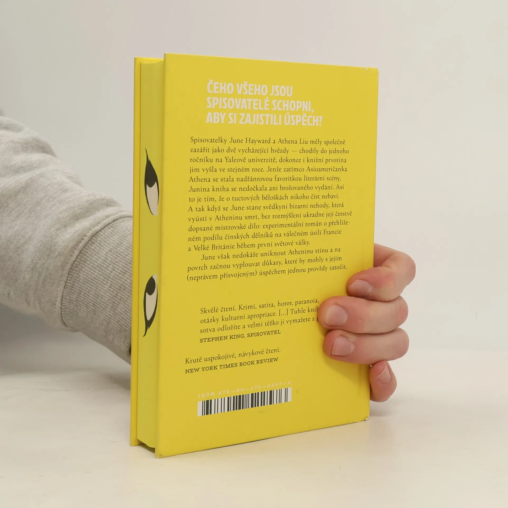 Příběh dvou začínajících spisovatelek/kamarádek, které literární svět vnímá zcela odlišně. Ten samý svět, který káže o rasismu a moralizuje o menšinách, spisovatelské nitro umí ale vmžiku spočítat v dolarech. Spisovatelky June Hayward a Athena Liu měly společně zazářit jako dvě vycházející hvězdy - chodily do jednoho ročníku na Yaleově univerzitě, dokonce i knižní prvotina jim vyšla ve stejném roce. Jenže zatímco Asioameričanka Athena se stala nadžánrovou favoritkou literární scény, Junina kniha se nedočkala ani brožovaného vydání. Asi to je tím, že o tuctových běloškách nikoho číst nebaví. A tak když se June stane svědkyní bizarní nehody, která vyústí v Atheninu smrt, bez rozmýšlení ukradne její čerstvě dopsané mistrovské dílo: experimentální román o přehlíženém podílu čínských dělníků na válečném úsilí Francie a Velké Británie během první světové války. Nakladatelská anotace. Kráceno.