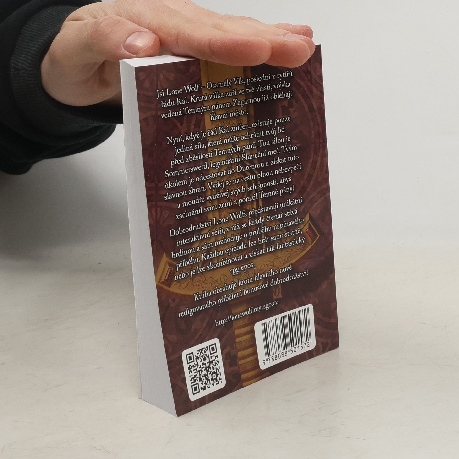 Druhý díl slavné série gamebooků o Lone Wolfovi (Osamělém Vlkovi), který se tentokrát prostřednictvím čtenáře-hráče snaží získat legendární Sluneční meč a zvítězit tak nad silou Temných pánů. Jsi Lone Wolf, poslední z rytířů řádu Kai. Krutá válka zuří ve tvé vlasti, Sommerlundu, od té doby, co Temní páni začali obléhat hlavní město země. V Ohni na vodě tě král posílá do Durenoru pro zbraň, která jediná může zachránit lid Sommerlundu: Sommerswerd - Sluneční meč. Vydej se na cestu plnou nebezpečí a moudře využívej svých schopností, abys získal Sommerswerd, a tak zachránil vlast před zničením Temnými pány. Nakladatelská anotace.