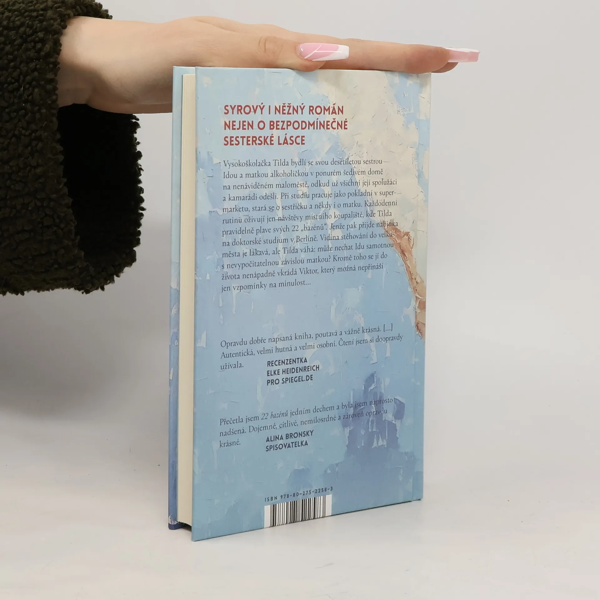 Syrový i něžný román nejen o bezpodmínečné sesterské lásce. Vysokoškolačka Tilda bydlí se svou desetiletou sestrou Idou a matkou alkoholičkou v ponurém šedivém domě na nenáviděném maloměstě, odkud už všichni její spolužáci a kamarádi odešli. Při studiu pracuje jako pokladní v supermarketu, stará se o sestřičku a někdy i o matku. Každodenní rutinu oživují jen návštěvy místního koupaliště, kde Tilda pravidelně plave svých 22 „bazénů“. Jenže pak přijde nabídka na doktorské studium v Berlíně. Tildu vidina stěhování do velkoměsta láká, ale zároveň váhá: může nechat Idu samotnou s nevypočitatelnou závislou matkou? Kromě toho se jí do života nenápadně vkrádá Viktor, který možná nepřináší jen vzpomínky na minulost…