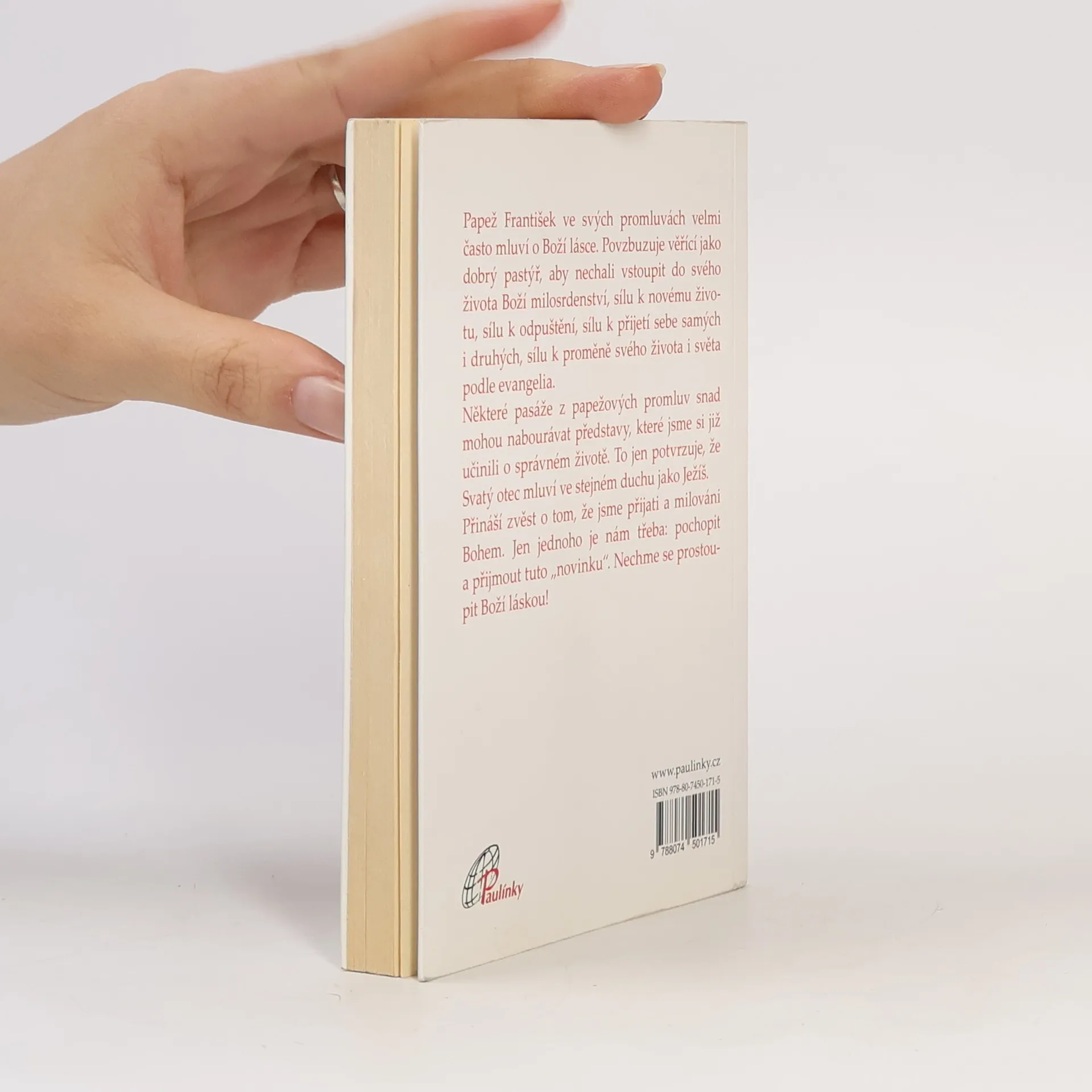 Výběr z papežových zamyšlení nad Božím milosrdenstvím z promluv pronesených v prvních dvou letech jeho pontifikátu. Papež František často boří naše „zaběhané“ představy o správném životě. To jen potvrzuje, že Svatý otec mluví ve stejném duchu jako Ježíš a zvěstuje tutéž dobrou zprávu: Jsme přijati a milováni Bohem. Otevřeme se jeho milosrdenství!