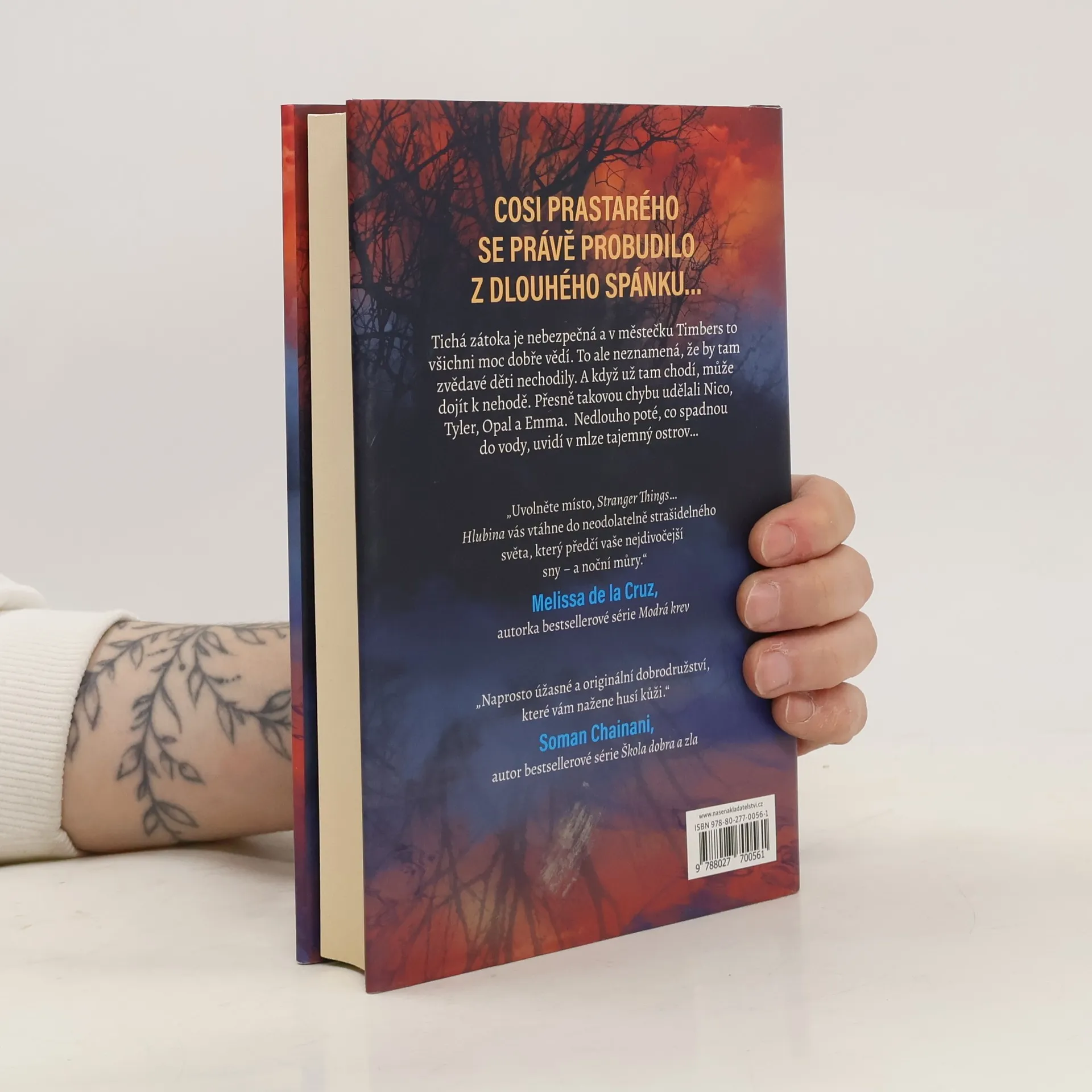 Něco prastarého se probudilo ze spánku… V Timbers všichni vědí, že před Tichou zátokou je potřeba se mít na pozoru. Objevuje se tam hrůzostrašná Bestie a s ní jsou spojeny další podobně děsivé příběhy. Když ale do ledových vod Tiché zátoky spadne kvůli šikaně dvanáctiletý Nico Holland, tak se ho kamarádi Tyler a Emma – a dokonce i Opal Walshová, která jinak tráví čas hlavně s oblíbenými dětmi – vydají zachránit… a v neprostupné mlze objeví tajemný ostrov. I když se ostrov zdá být neobydlený, nemůžou se děti zbavit dojmu, že na něm něco nehraje. Podezření zesílí, když najdou opuštěný hausbót plný nejrůznějších prapodivných věcí jako jsou starodávné zbraně, zneklidňující portréty, mapy neznámých území nebo skleněná láhev, ve které plave něco neidentifikovatelného. A ve sklepení hausbótu číhá temné a hluboké tajemství. V nové tajuplné klubovně se životy kamarádů začnou podivuhodně a nebezpečně proplétat. Něco prastarého se totiž probudilo ze spánku… a dokáže to rozpoznat nejen jejich přání a sny, ale i nejhlubší a nejtemnější obavy. Zvládnou se postavit děsům, které se skrývají v jejich srdci? Příběh, ve kterém se střídají vypravěči, vytvořili Ally Condie a Brendan Reichs jako začátek napínavé série o přátelství a sebedůvěře – i o důvěře druhým.