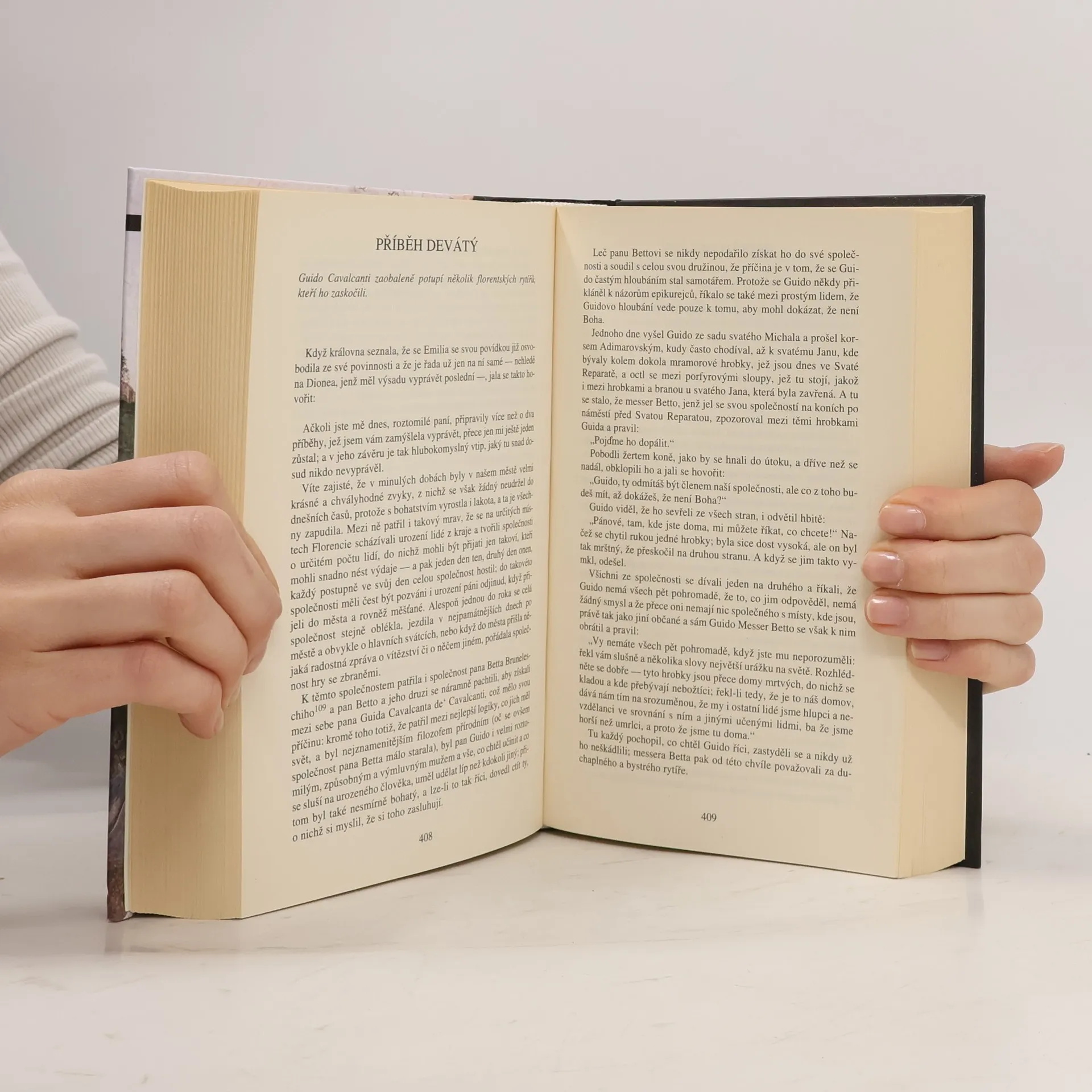Italské město Florencie je zaplaveno vražedným morem. Někteří lidé se zavírají do svých domovů, neboť nemoc se šíří velmi rychle. Jiní měli opačný lék na to, jak se této nemoci vyhnout - užívali si zábavy, hodně pili a žertovali. Lidé po tisících umírali, a tak je na márách nosili hrobaři z drobného lidu a jen málokdy pro nebožtíky někdo truchlil. V té době se v kostele Santa Maria Novella sešlo sedm dam. Autor dle svých slov nechtěl uvádět jejich pravá jména, pojmenoval je tedy: Pampinea, Fiammeta, Filomena, Emilia, Lauretta, Neifilie a Elisa. V kostele se náhodou setkají se třemi mladíky (Pamfineem, Filostratem a Dioneem), které přemluví, aby s nimi odešli z města. Poté se odeberou do jakéhosi sídla. Domluví se, že každý den bude zvolen král či královna a každý den si všichni připraví příběh na dané téma pro ostatní. Každý den je tedy vyprávěno 10 příběhů. Po deset dní přebývají v sídle a jedenáctý se vrátí zpět do Florencie, kde mladíci zanechají dámy v Santa Maria Novelle, na místě, na kterém se s nimi poprvé setkali. Dotisk v r. 2010