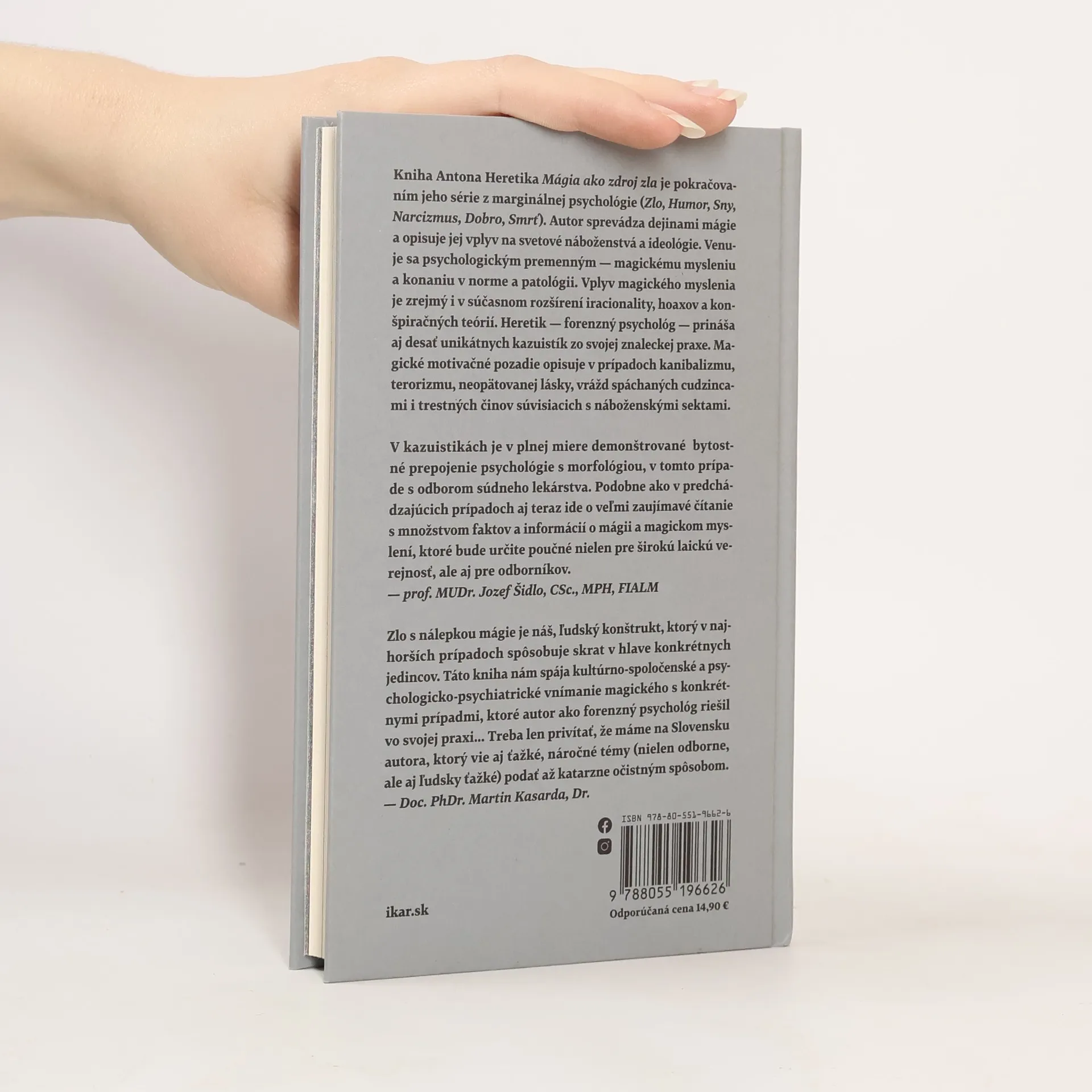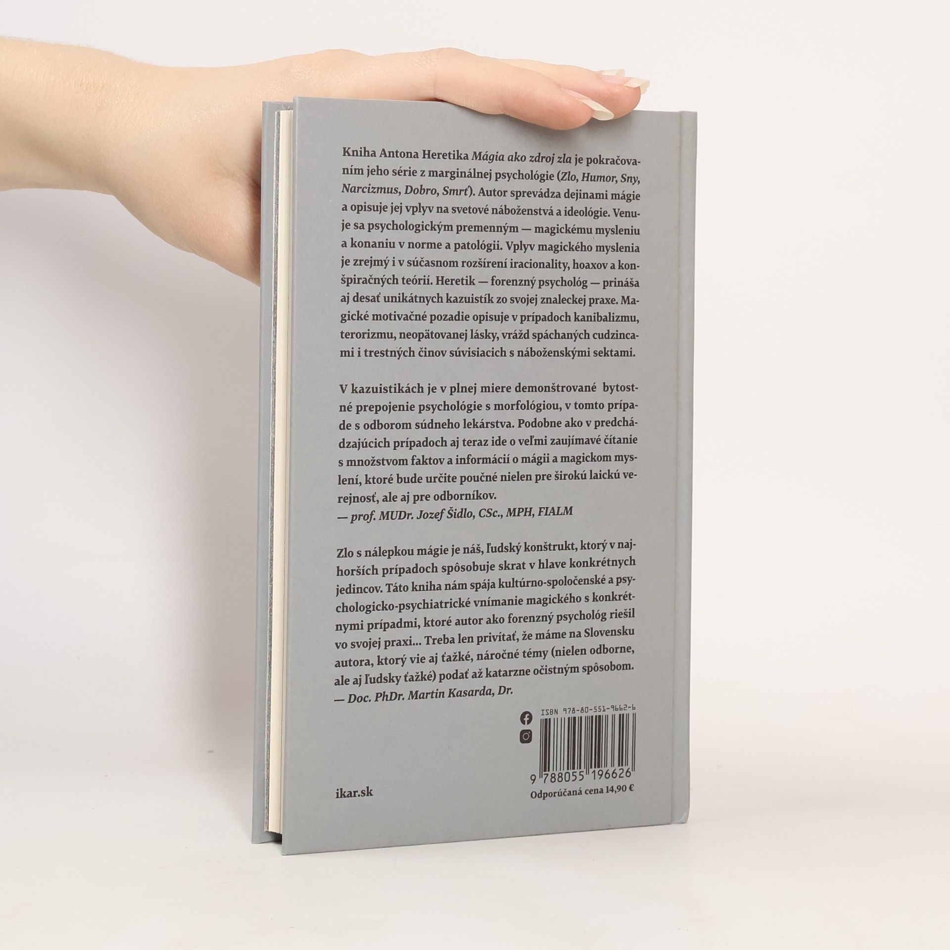 Kniha Antona Heretika Mágia ako zdroj zla je pokračovaním jeho série z marginálnej psychológie (Zlo, Humor, Sny, Narcizmus, Dobro, Smrť). Autor sprevádza dejinami mágie a opisuje jej formatívny vplyv na svetové náboženstvá a ideológie. Venuje sa psychologickým premenným – magickému mysleniu a konaniu v norme a patológii. Vplyv magického myslenia je zrejmý i v súčasnom rozšírení iracionality, hoaxov a konšpiračných teórií. Heretik – forenzný psychológ – prináša aj desať unikátnych kazuistík zo svojej znaleckej praxe. Magické motivačné pozadie opisuje v prípadoch kanibalizmu, terorizmu, neopätovanej lásky, vrážd spáchaných cudzincami i trestných činov súvisiacich s náboženskými sektami. Nádej na zvládanie iracionality a nebezpečného magického myslenia vidí vo vede, vzdelávaní a v umení.