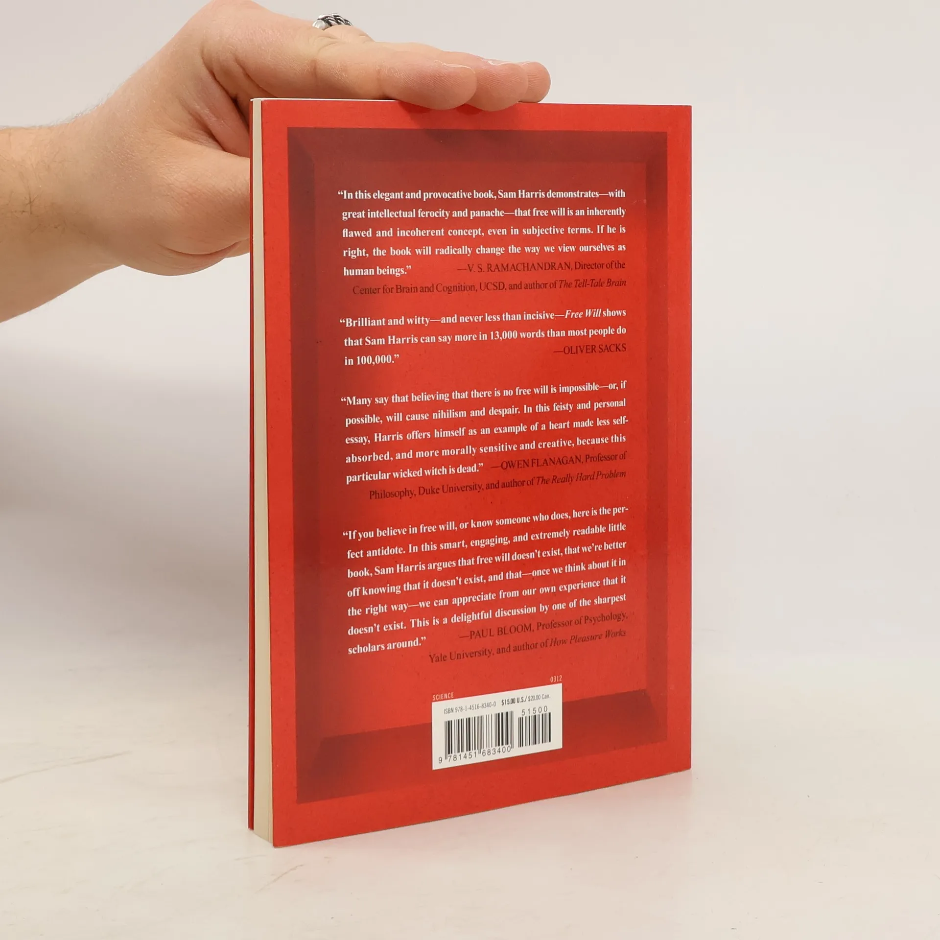 From the New York Times bestselling author of The End of Faith, a thought-provoking, "brilliant and witty" (Oliver Sacks) look at the notion of free will—and the implications that it is an illusion. A belief in free will touches nearly everything that human beings value. It is difficult to think about law, politics, religion, public policy, intimate relationships, morality—as well as feelings of remorse or personal achievement—without first imagining that every person is the true source of his or her thoughts and actions. And yet the facts tell us that free will is an illusion. In this enlightening book, Sam Harris argues that this truth about the human mind does not undermine morality or diminish the importance of social and political freedom, but it can and should change the way we think about some of the most important questions in life.