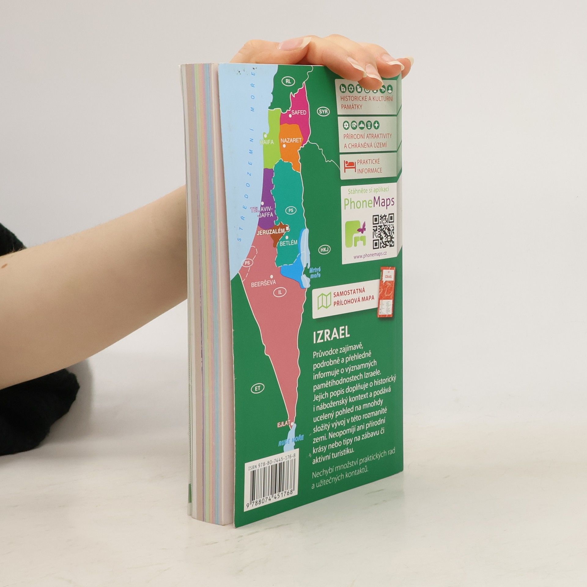 Průvodce přehledně a podrobně seznamuje s nejvýznamnějšími turistickými cíli Izraele. Zahrnuje jak atraktivní historická území Jeruzaléma, Galileje či okolí Mrtvého moře, tak i Negevskou poušť a přímořské centrum Eilat. Součástí průvodce je také popis skalních chrámů v jordánské Petře. Podrobná charakteristika země obsahuje všeobecné informace o historii, přírodě a památkách, stejně jako řadu praktických rad pro turisty, včetně možností ubytování a užitečných kontaktů. Publikace je přehledně členěna podle jednotlivých oblastí, popis nejzajímavějších míst doplňují mapy, plány měst a množství fotografií. Nechybí slovníček místních pojmů včetně výrazů v hebrejském písmu a rejstřík.