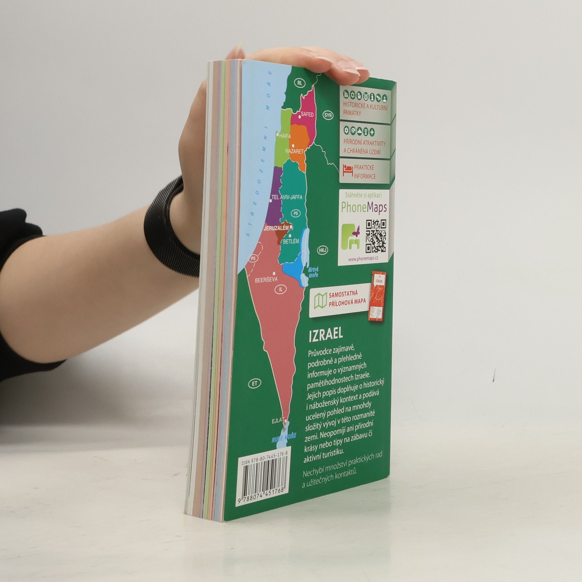 Průvodce přehledně a podrobně seznamuje s nejvýznamnějšími turistickými cíli Izraele. Zahrnuje jak atraktivní historická území Jeruzaléma, Galileje či okolí Mrtvého moře, tak i Negevskou poušť a přímořské centrum Eilat. Součástí průvodce je také popis skalních chrámů v jordánské Petře. Podrobná charakteristika země obsahuje všeobecné informace o historii, přírodě a památkách, stejně jako řadu praktických rad pro turisty, včetně možností ubytování a užitečných kontaktů. Publikace je přehledně členěna podle jednotlivých oblastí, popis nejzajímavějších míst doplňují mapy, plány měst a množství fotografií. Nechybí slovníček místních pojmů včetně výrazů v hebrejském písmu a rejstřík.