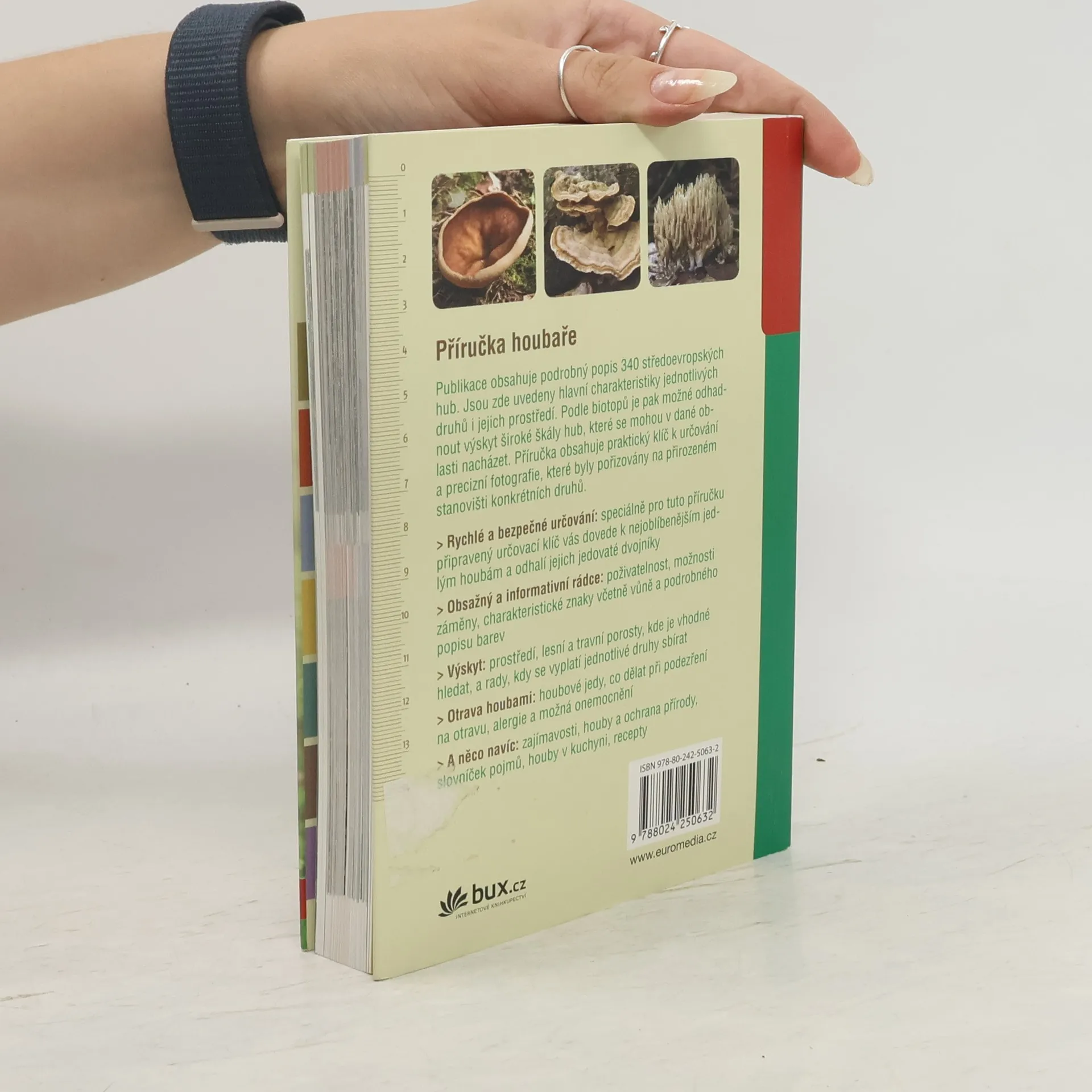 Publikace obsahuje podrobný popis 340 středoevropských hub. Jsou zde uvedeny hlavní charakteristiky jednotlivých druhů i jejich životní prostředí. Podle biotopů je pak možné odhadnout výskyt více druhů hub, které se mohou v dané oblasti nacházet. Příručka obsahuje rovněž praktický klíč k určování a precizní fotografie, které byly pořizovány na přirozeném stanovišti konkrétních druhů. Na závěr je zde uvedeno, jak správně sbírat houby, jak je zpracovávat a stručné rozdělení houbových jedů a způsob jejich působení na různé tělesné orgány člověka.