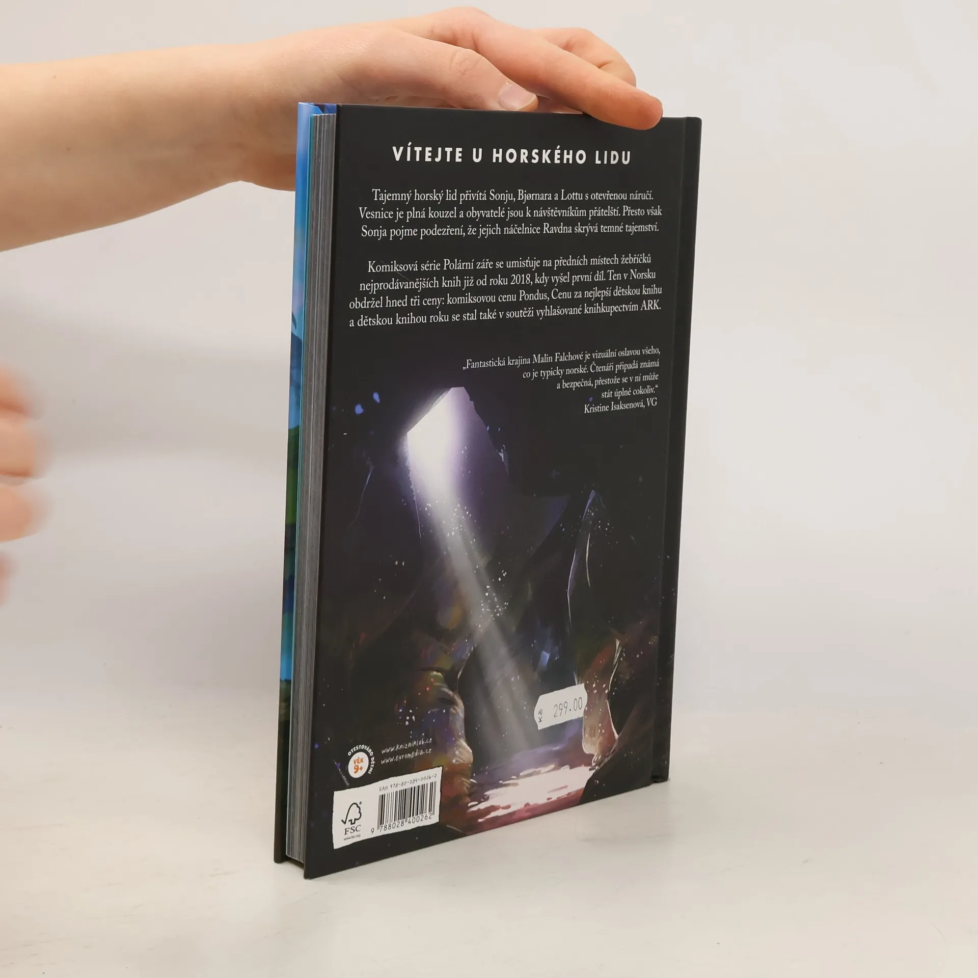 Tajemný horský lid přivítá Sonju, Bjornara a Lottu s otevřenou náručí. Vesnice je plná kouzel a obyvatelé jsou k návštěvníkům přátelští, Sonja však pojme podezření, že náčelnice Ravdna skrývá temné tajemství. Svět, ve kterém se ocitla, je zjevně nebezpečnější, než se zdálo. A kam zmizel Espen? Našli ho snad vikingové? Třetí díl úspěšného norského komiksu opět zavede čtenáře do magického světa za polární září. Pro čtenáře od devíti let.
