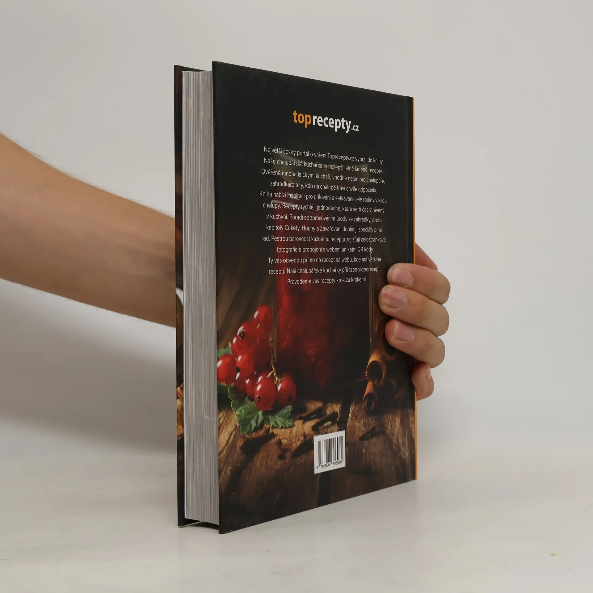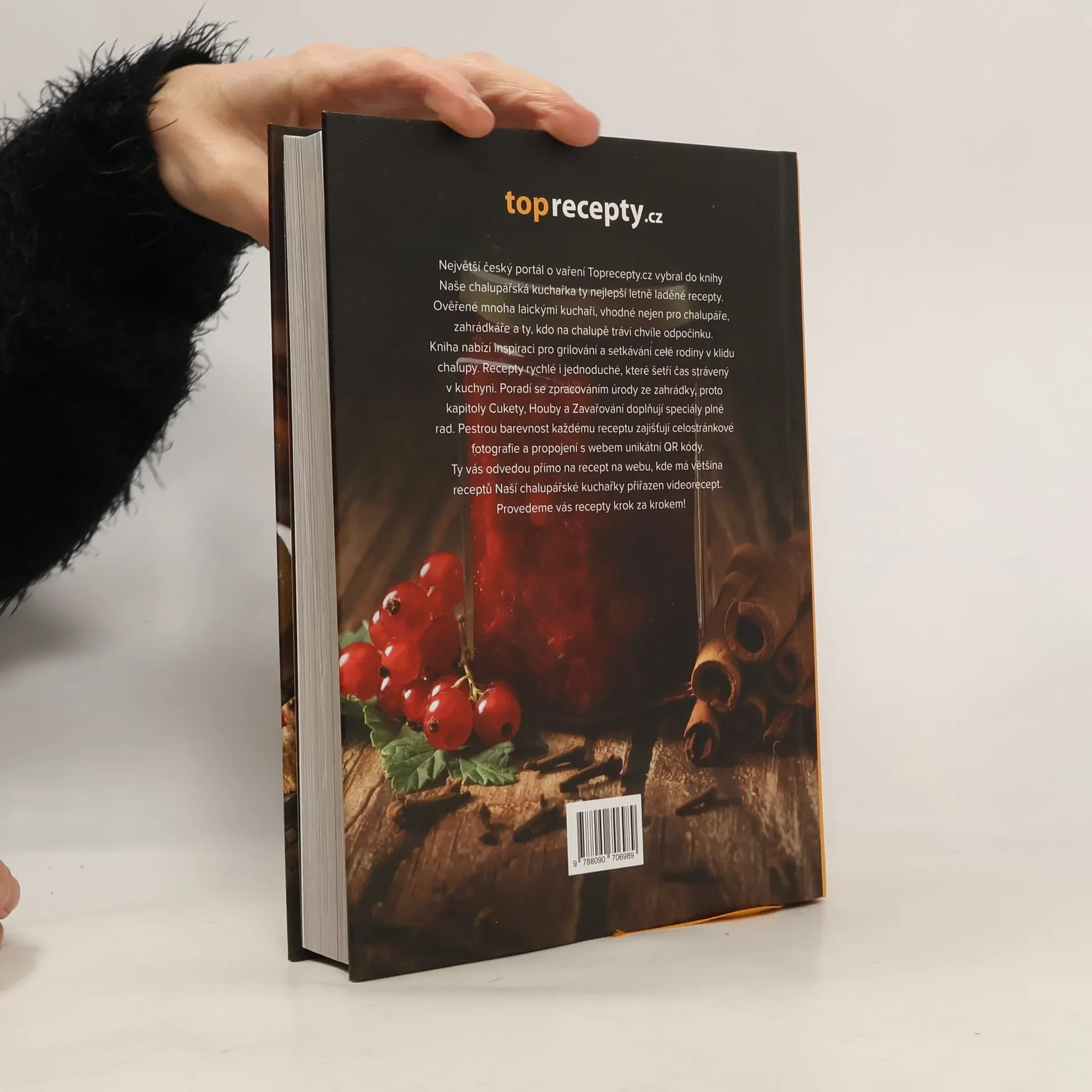 Největší český portál o vaření Toprecepty.cz vybral do knihy Naše chalupářská kuchařka ty nejlepší letně laděné recepty. Ověřené mnoha laickými kuchaři, vhodné nejen pro chalupáře, zahrádkáře a ty, kdo na chalupě tráví chvíle odpočinku. Kniha nabízí inspiraci pro grilování a setkávání celé rodiny v klidu chalupy. Recepty rychlé i jednoduché, které šetří čas strávený v kuchyni. Poradí se zpracováním úrody ze zahrádky, proto kapitoly Cukety, Houby a Zavařování doplňují speciály plné rad. Pestrou barevnost každému receptu zajišťují celostránkové fotografie a propojení s webem unikátní QR kódy. Ty vás odvedou přímo na recept na webu, kde má většina receptů Naší chalupářské kuchařky přiřazen videorecept. Provedeme vás recepty krok za krokem!