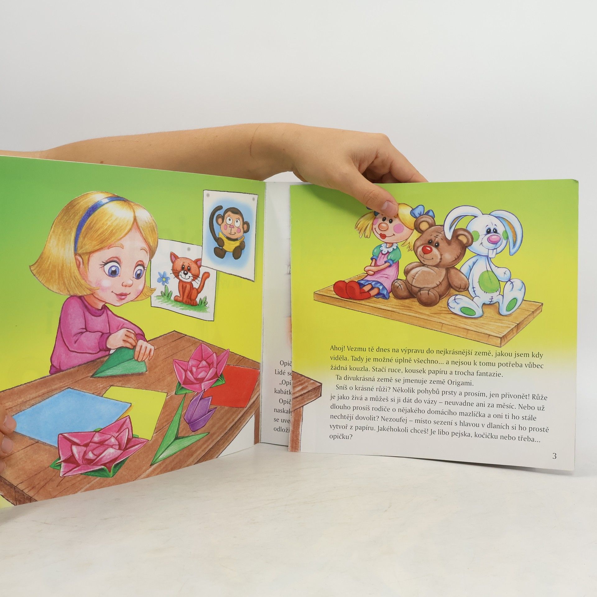Čti, poznávej svět, sestavuj modely! V této knížce najdeš veselé celostránkové ilustrace a hlavně vyprávění o statečné holčičce Aničce, která miluje kouzelnou zábavu s origami. Díky své představivosti cestuje při hledání své opičky do neobvyklých míst. Chceš se dozvědět víc o dobrodružstvích Aničky, její opičky a kamaráda Vítka? Navíc obsahuje návody krok za krokem na sestavení 20 modelů origami ve tvaru zvířátek a předmětů z vyprávění, a to včetně speciálních listů papíru přizpůsobených každému jednotlivému modelu. Po jejich sestavení si můžeš vymýšlet jejich další dobrodružství. Vytvoř si ve svém pokoji fascinující svět dalekých cest!