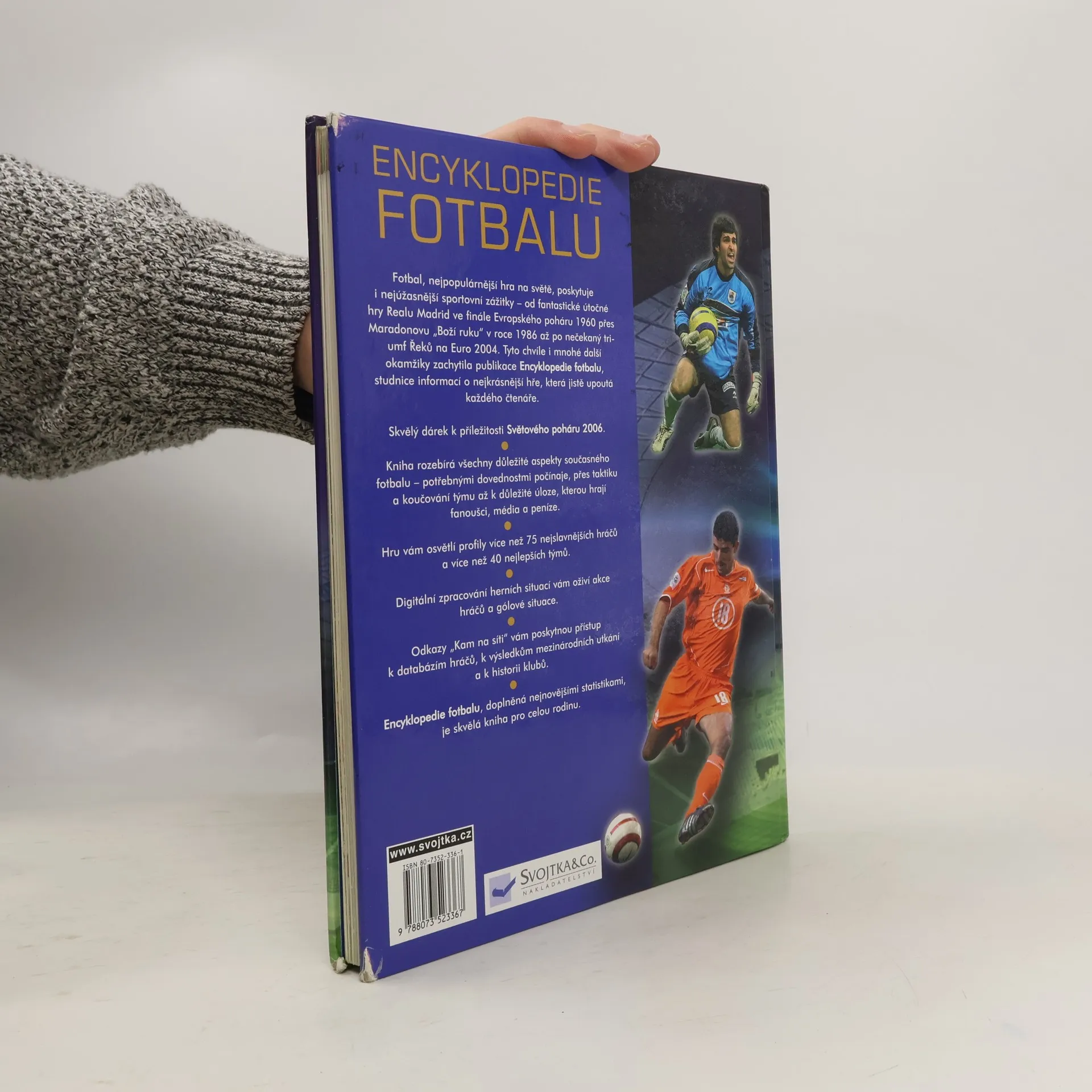 Fotbal, nejpopulárnější hra na světě, poskytuje i nejúžasnější sportovní zážitky - od fantastické útočné hry Realu Madrid ve finále Evropského poháru 1960 přes Maradonovu "Boží ruku" v roce 1986 až po nečekaný triumf Řeků na Euro 2004. Tyto chvíle i mnohé další okamžiky zachytila publikace Encyklopedie fotbalu, studnice informací o nejkrásnější hře, která jistě upoutá každého čtenáře. - Kniha rozebírá všechny důležité aspekty současného fotbalu - potřebnými dovednostmi počínaje, přes taktiku a koučování týmu až k důležité úloze, kterou hrají fanoušci, média a peníze. - Hru vám osvětlí profily více než 75 nejslavnějších hráčů a více než 40 nejlepších týmů. - Digitální zpracování herních situací vám oživí akce hráčů a gólové situace. - Odkazy "Kam na síti" vám poskytnou přístup k databázím hráčů, k výsledkům mezinárodních utkání a k historii klubů. - Encyklopedie fotbalu, doplněná nejnovějšími statistikami, je skvělá kniha pro celou rodinu i jako dárek k příležitosti Mistrovství světa 2006.