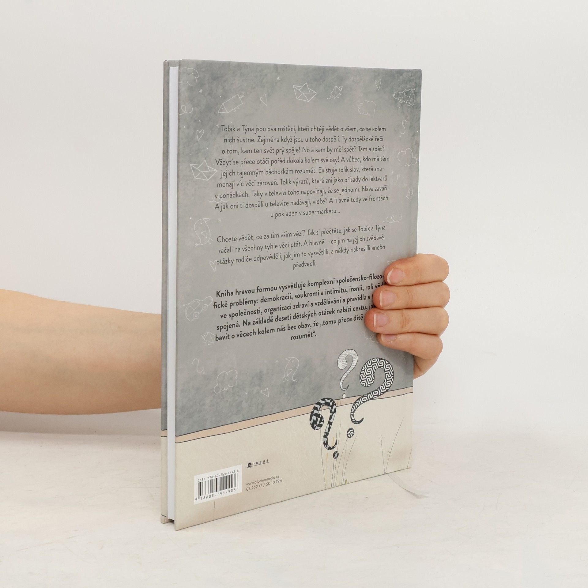 Tobík a Týna jsou dva rošťáci, kteří chtějí vědět o všem, co se kolem nich šustne. Obzvlášť je zajímají dospělácké řeči… Jenže kdo má těm tajemným báchorkám rozumět. Existuje tolik slov, která znamenají víc věcí zároveň. Výrazů, které zní jako přísady do lektvarů. Taky v televizi toho napovídají, že se jednomu hlava zavaří. A jak oni ti dospělí u toho nadávají, viďte? Chcete vědět, co za tím vším vězí? Tak si přečtěte, jak se Tobík a Týna začali ptát a co jim na jejich zvědavé otázky rodiče odpověděli...