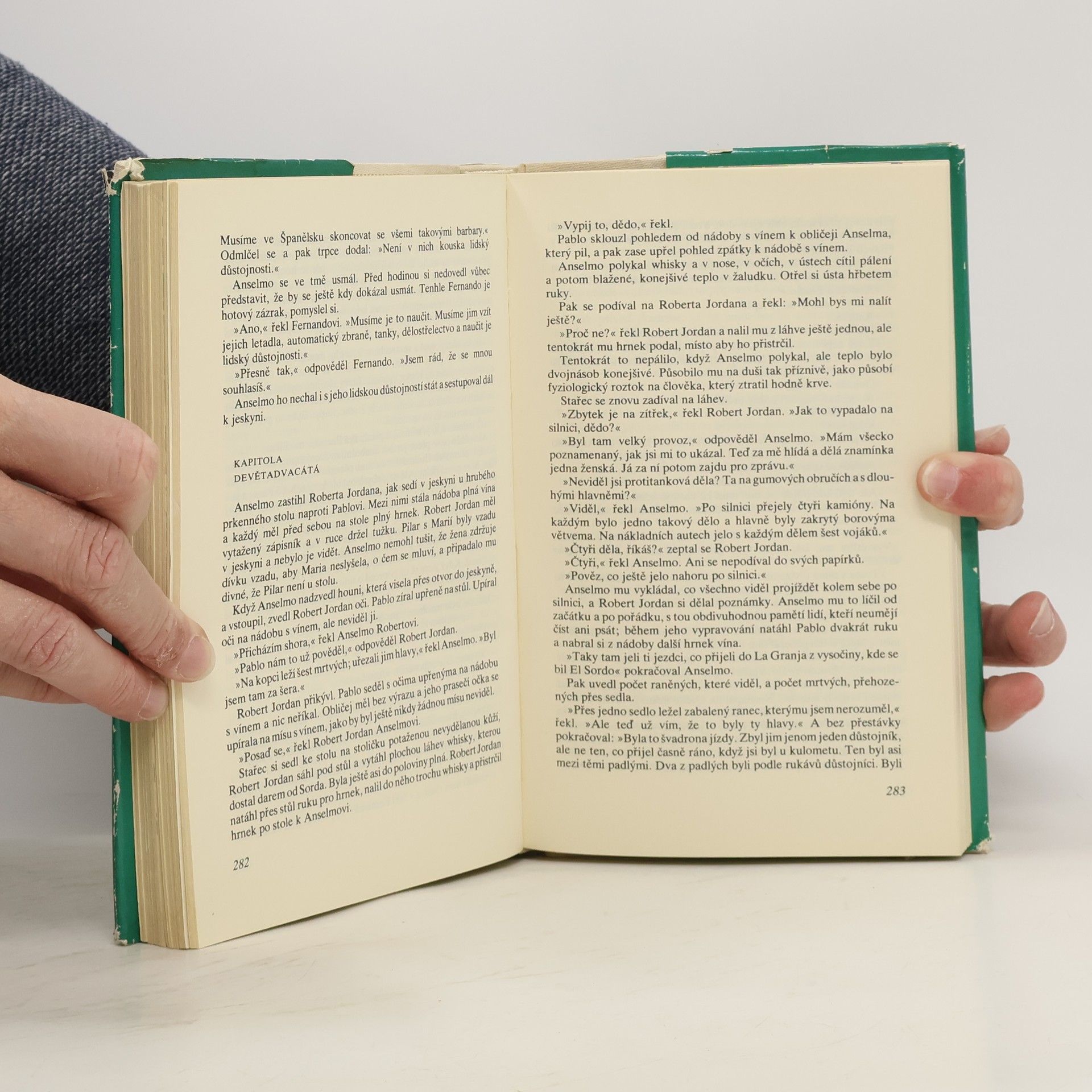 Od svého prvního setkání s autorem jsem měla obrovská očekávání. Doslova jsem čekala, že mě jeho styl a kniha posadí na zadek, ale nestalo se tak. Dialogy jsou velmi zvláštně napsané. Hemingway často dialogy opakuje klidně nekolikrát za sebou a to mi upřímně lezlo strašně na nervy. Stejně tak jako neustále se opakující jméno Robert Jordan. Robert Jordan udělal tohle, Robert Jordan udělal tamto. Bylo to velmi otravné. Moc tomu nepřispěly ani zdlouhavé a nudné filozofické myšlenky hlavní postavy. Celkově byl pro mě příběh dost o ničem, dokonce i ta romantická linka byla dost odtažitá, stejně jako zbytek knihy.