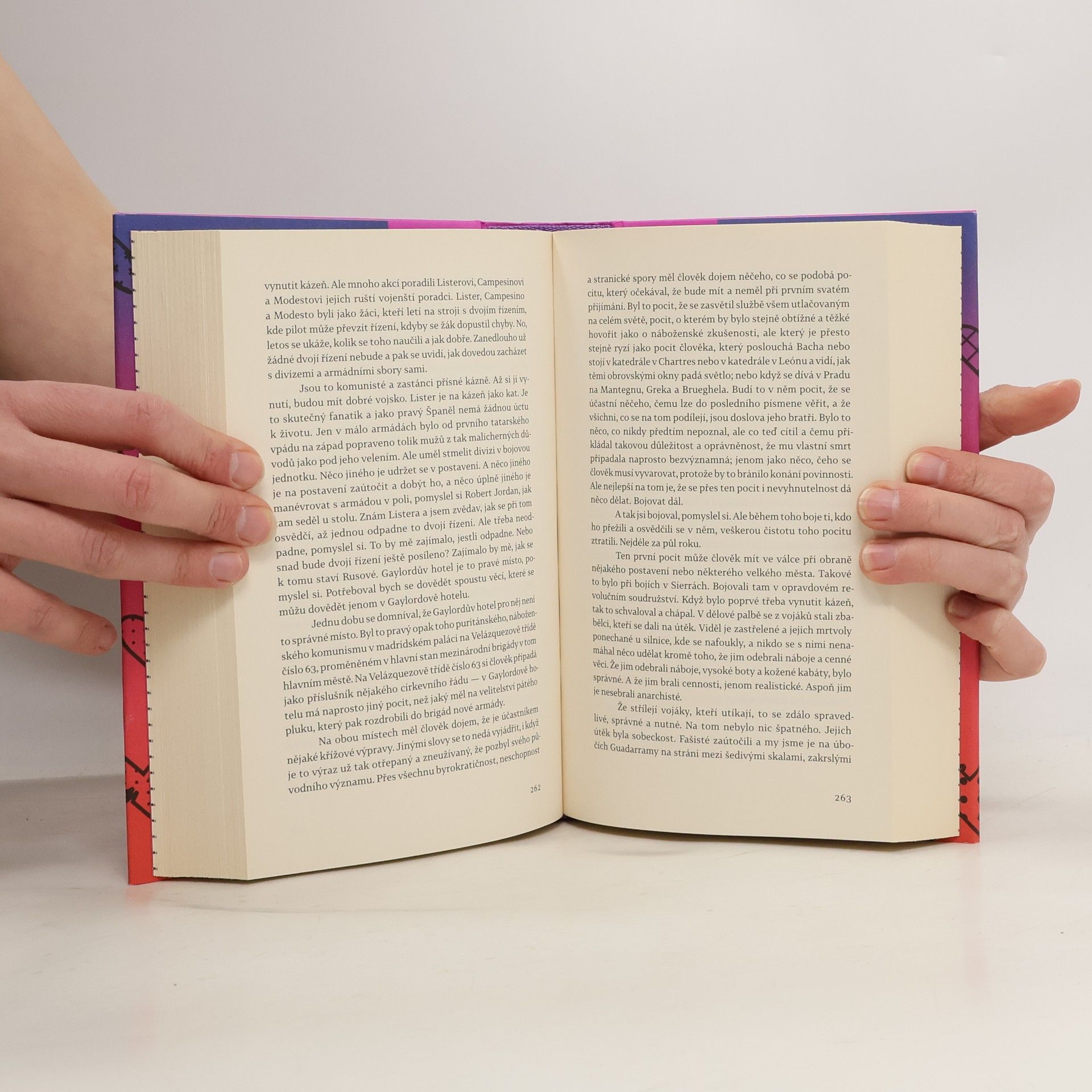 Od svého prvního setkání s autorem jsem měla obrovská očekávání. Doslova jsem čekala, že mě jeho styl a kniha posadí na zadek, ale nestalo se tak. Dialogy jsou velmi zvláštně napsané. Hemingway často dialogy opakuje klidně nekolikrát za sebou a to mi upřímně lezlo strašně na nervy. Stejně tak jako neustále se opakující jméno Robert Jordan. Robert Jordan udělal tohle, Robert Jordan udělal tamto. Bylo to velmi otravné. Moc tomu nepřispěly ani zdlouhavé a nudné filozofické myšlenky hlavní postavy. Celkově byl pro mě příběh dost o ničem, dokonce i ta romantická linka byla dost odtažitá, stejně jako zbytek knihy.