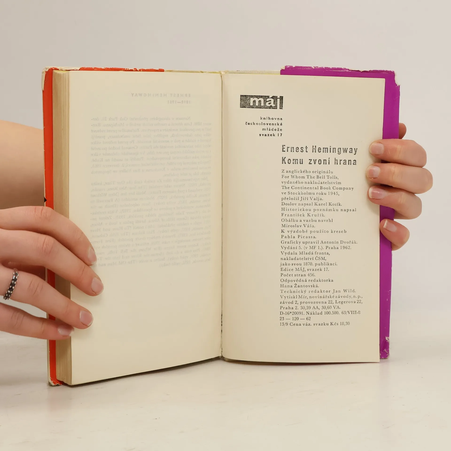 Světově proslulý román, vzniklý na základě autorových prožitků ze španělské občanské války. Doslov „Smrt a láska v Hemingwayově románu Komu zvoní hrana“ napsal Karel Kosík, historickou poznámku František Kružík.