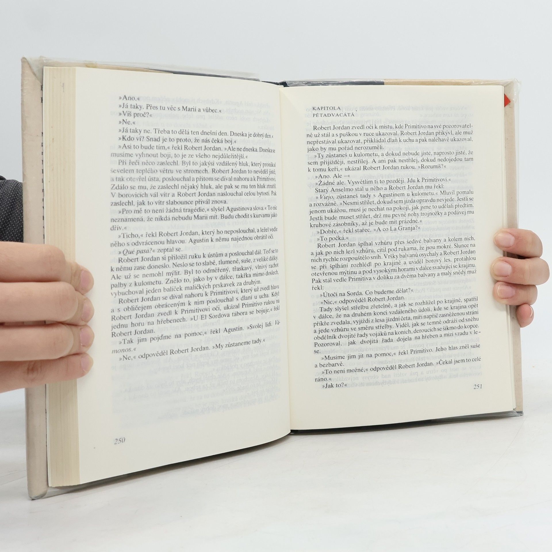 Od svého prvního setkání s autorem jsem měla obrovská očekávání. Doslova jsem čekala, že mě jeho styl a kniha posadí na zadek, ale nestalo se tak. Dialogy jsou velmi zvláštně napsané. Hemingway často dialogy opakuje klidně nekolikrát za sebou a to mi upřímně lezlo strašně na nervy. Stejně tak jako neustále se opakující jméno Robert Jordan. Robert Jordan udělal tohle, Robert Jordan udělal tamto. Bylo to velmi otravné. Moc tomu nepřispěly ani zdlouhavé a nudné filozofické myšlenky hlavní postavy. Celkově byl pro mě příběh dost o ničem, dokonce i ta romantická linka byla dost odtažitá, stejně jako zbytek knihy.