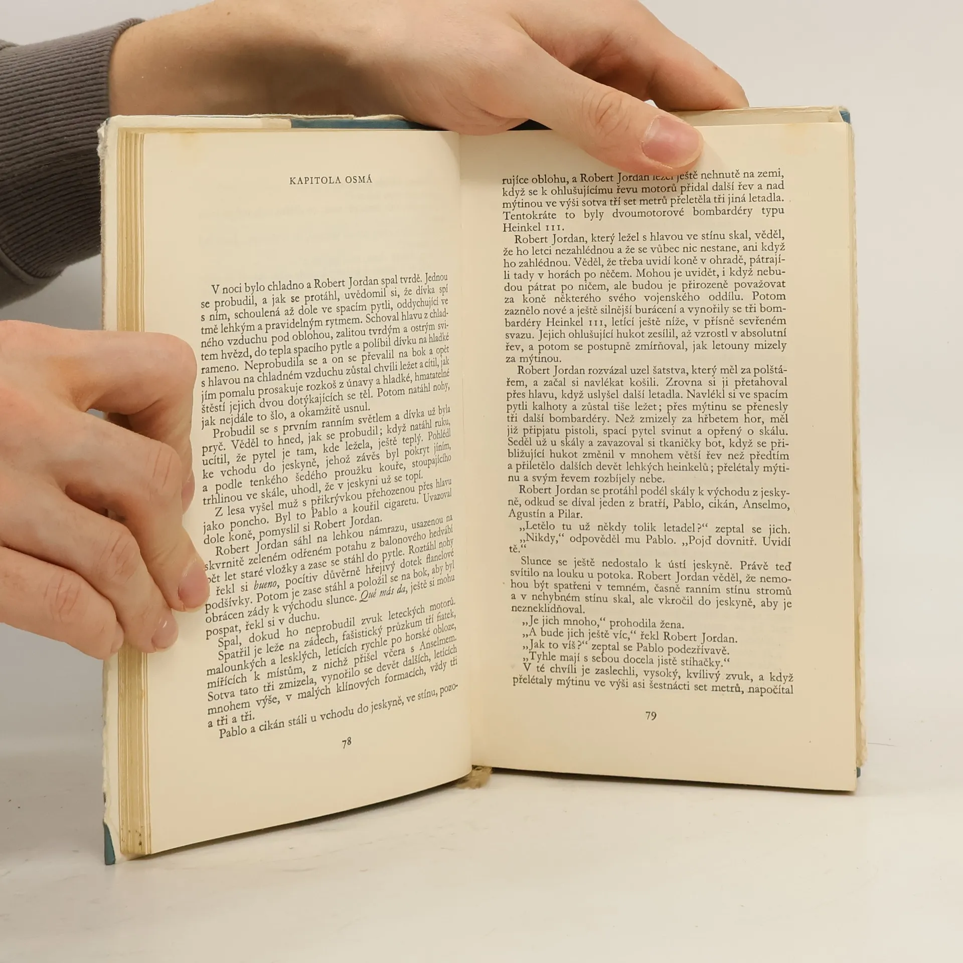 Od svého prvního setkání s autorem jsem měla obrovská očekávání. Doslova jsem čekala, že mě jeho styl a kniha posadí na zadek, ale nestalo se tak. Dialogy jsou velmi zvláštně napsané. Hemingway často dialogy opakuje klidně nekolikrát za sebou a to mi upřímně lezlo strašně na nervy. Stejně tak jako neustále se opakující jméno Robert Jordan. Robert Jordan udělal tohle, Robert Jordan udělal tamto. Bylo to velmi otravné. Moc tomu nepřispěly ani zdlouhavé a nudné filozofické myšlenky hlavní postavy. Celkově byl pro mě příběh dost o ničem, dokonce i ta romantická linka byla dost odtažitá, stejně jako zbytek knihy.
