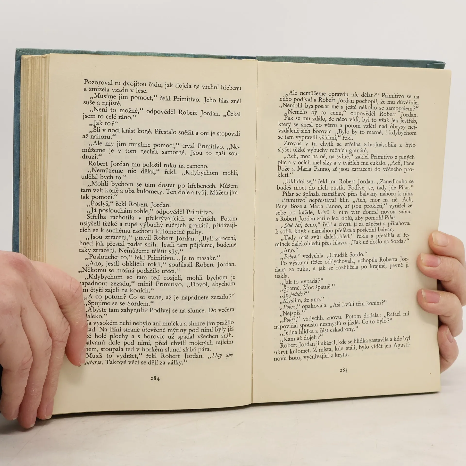 Od svého prvního setkání s autorem jsem měla obrovská očekávání. Doslova jsem čekala, že mě jeho styl a kniha posadí na zadek, ale nestalo se tak. Dialogy jsou velmi zvláštně napsané. Hemingway často dialogy opakuje klidně nekolikrát za sebou a to mi upřímně lezlo strašně na nervy. Stejně tak jako neustále se opakující jméno Robert Jordan. Robert Jordan udělal tohle, Robert Jordan udělal tamto. Bylo to velmi otravné. Moc tomu nepřispěly ani zdlouhavé a nudné filozofické myšlenky hlavní postavy. Celkově byl pro mě příběh dost o ničem, dokonce i ta romantická linka byla dost odtažitá, stejně jako zbytek knihy.