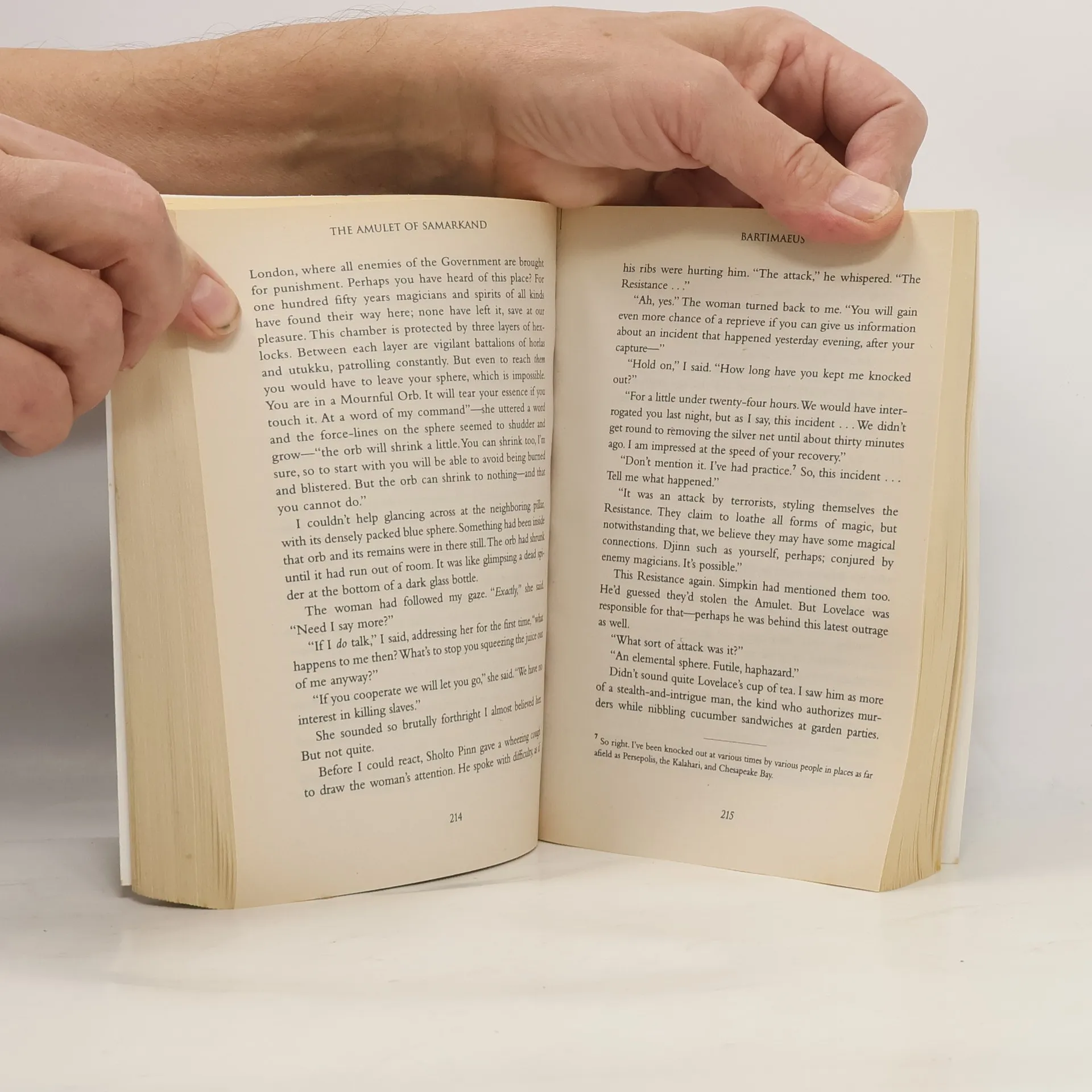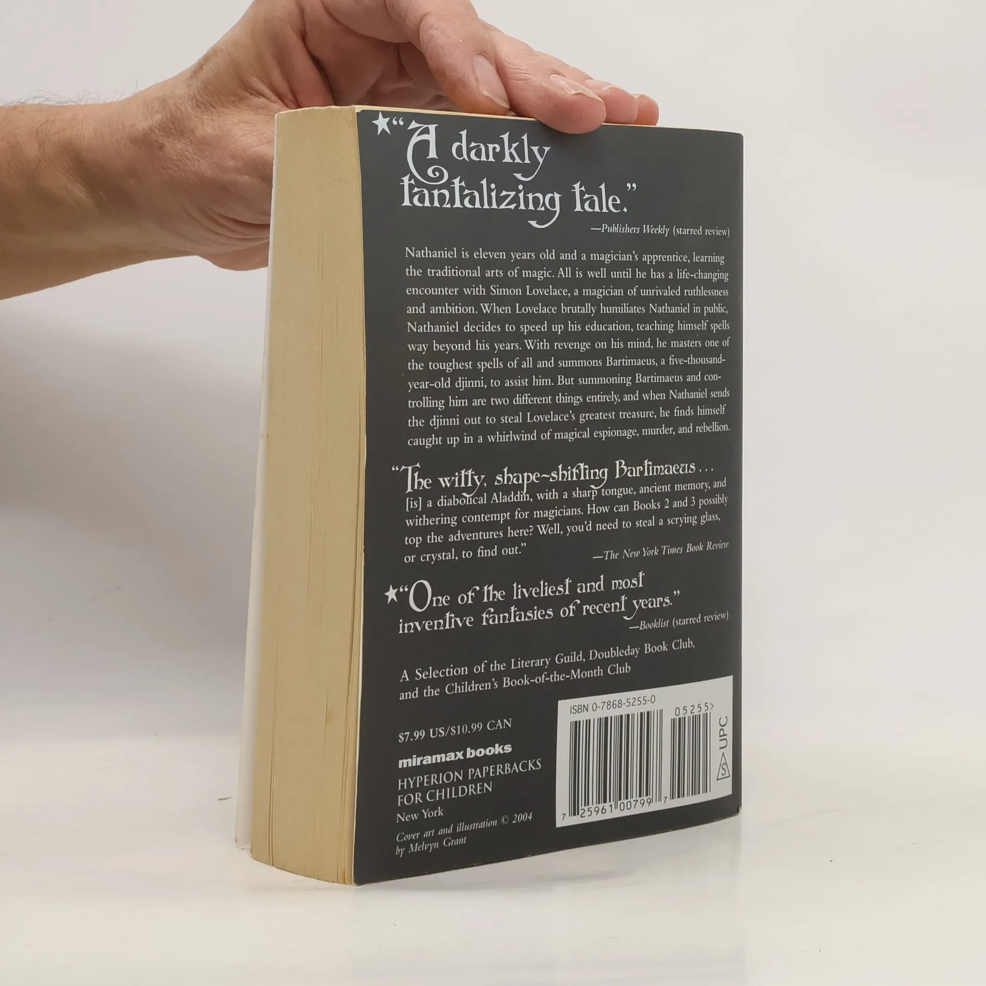 Nathaniel, a magician's apprentice, summons up the djinni Bartimaeus and instructs him to steal the Amulet of Samarkand from the powerful magician Simon Lovelace