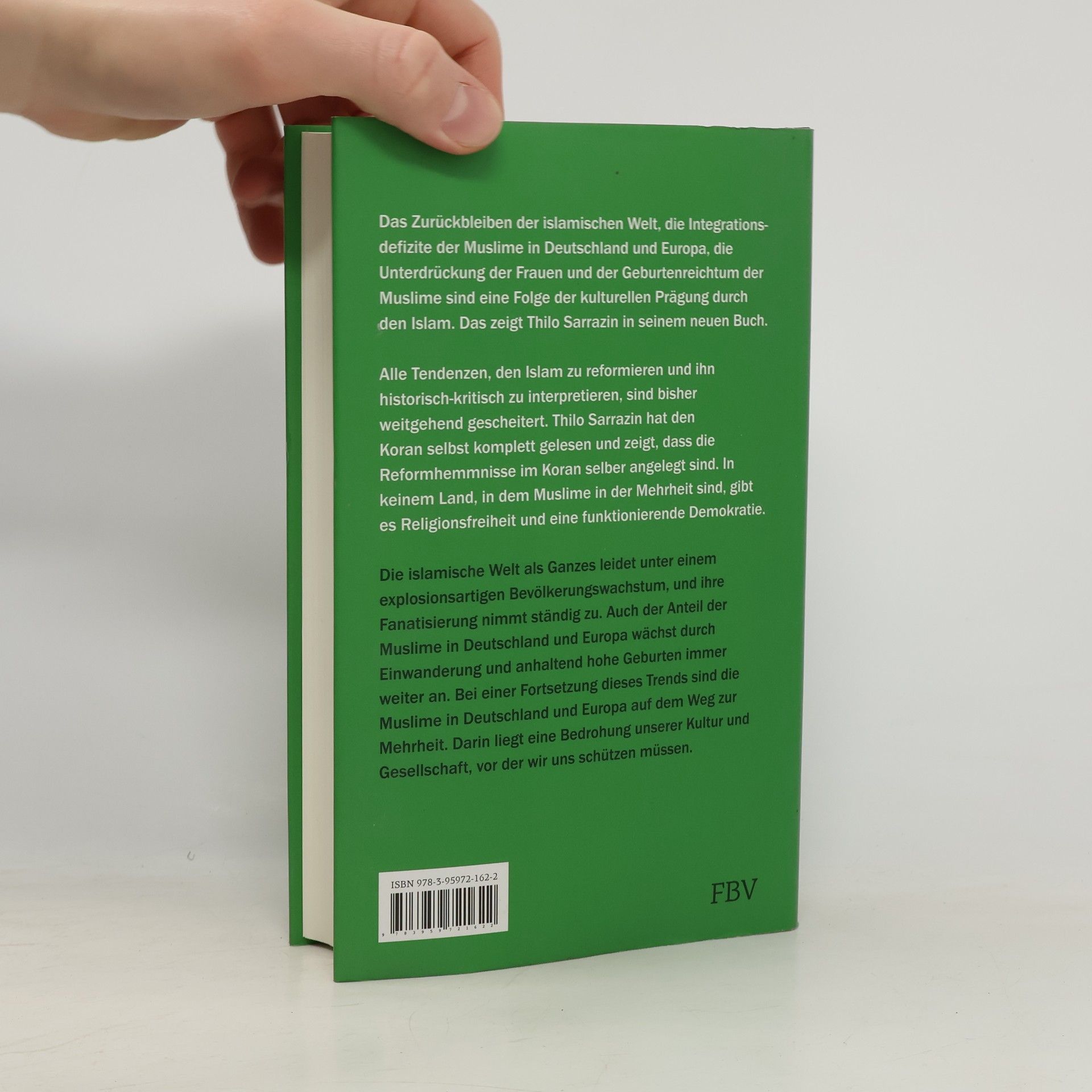 Das Zurückbleiben der islamischen Welt, die Integrationsdefizite der Muslime in Deutschland und Europa sowie die Unterdrückung der muslimischen Frauen sind eine Folge der kulturellen Prägung durch den Islam. Das zeigt Thilo Sarrazin in seinem neuen Bestseller. Auch Deutschland muss sich diesen Tatsachen stellen, wächst doch der Anteil der Muslime in Deutschland und Europa durch Einwanderung und anhaltend hohe Geburtenraten immer weiter an. Bei einer Fortsetzung dieses Trends sind die Muslime hier auf dem Weg zur Mehrheit. Unsere Kultur und Gesellschaft lassen sich nur schützen, indem die weitere Einwanderung von Muslimen gestoppt und die Integration der bei uns lebenden Muslime mit robusten Mitteln vorangetrieben wird. Denn alle Tendenzen, den Islam zu reformieren, sind bisher weitgehend gescheitert. So gibt es in keinem Land, in dem Muslime in der Mehrheit sind, Religionsfreiheit und eine funktionierende Demokratie. Stattdessen leidet die islamische Welt als Ganzes unter einem explosionsartigen Bevölkerungswachstum, und ihre Fanatisierung nimmt ständig zu. Thilo Sarrazin spannt einen Bogen von den Aussagen des Korans zur mentalen Prägung der Muslime, von da weiter zu Eigenarten und Problemen muslimischer Staaten und Gesellschaften und schließlich zu den Einstellungen und Verhaltensweisen von Muslimen in den Einwanderungsgesellschaften des Westens.