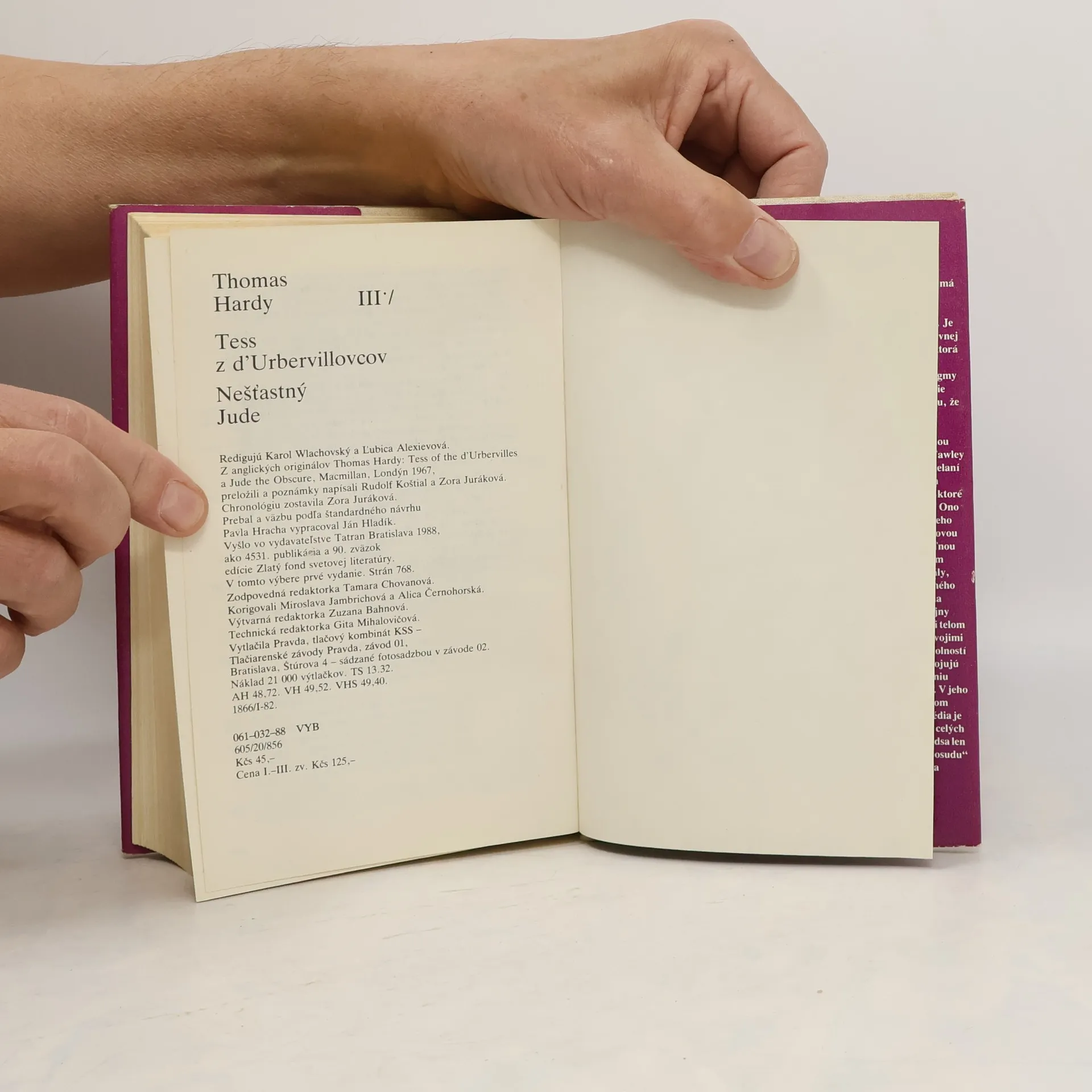 Zbierka dvoch autorových diel určite očarí každého priaznivca Thomasa Hardyho. Zbierka obsahuje dve známe prózy - Nešťastný Jude a Tess d´Urbervillovcov. V diele Tess d´Urberville, autor na jednoduchom vidieckom dievčati, ktoré telesne ťažko pracuje na poli, zobrazil neobyčajne hlboké a zložité city, aké sa predtým pripisovali zväčša len ľuďom z "vyššej spoločnosti". Tess prežíva lásku i sklamanie tak opravdivo, že čitateľ bez sentimentality sleduje jej pohnútky i činy a obohacuje aj svoj citový život. Ľahtikárski rodičia, pôžitkársky zvodca i nesmierne milovaný muž, ktorý sa nevie v rozhodujúcej chvíli povzniesť nad určité mravné a spoločenské kritéria, Tí všetci prispievajú k jej bolestnému koncu.