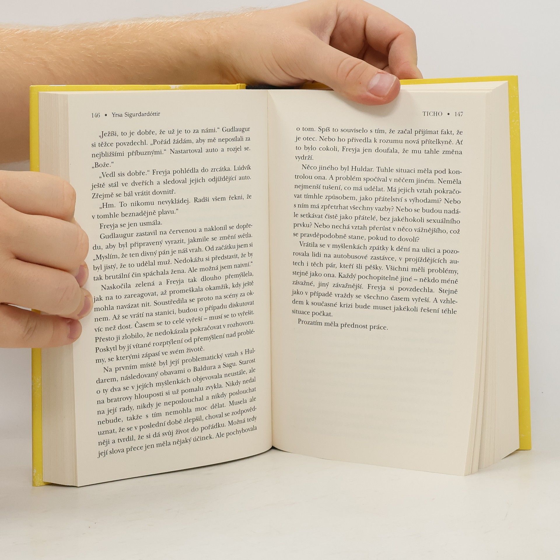 I mlčení může zabíjet...Uprostřed chladného dne v Reykjavíku zmizí z kočárku u luxusní vily spící nemluvně a na jeho místě leží cizí mrtvé dítě.O jedenáct let později objeví detektiv Huldar se svou nadřízenou Erlou v kufru odstaveného auta v Reykjavíku části rozsekaného ženského těla. Co tu ale chybí, je hlava oběti. Vyšetřovací tým, do něhož už oficiálně patří i dětská psycholožka Freyja, se pustí do vyšetřování jednoho z nejtěžších případů, který je stále zamotanější, vrací se do minulosti a jeho vyřešení se zdá být v nedohlednu.To těžce nese Huldarova těhotná nadřízená Erla. Dře dnem i nocí, protože se bojí o své místo i reputaci, pokud případ nestihne včas vyřešit. O svém těhotenství, stejně jako o otci dítěte se ale odmítá bavit. Mezi Freyjou a Huldarem stále něco je, mají však dohodu, že své soukromí nebudou tahat do práce. Vše ještě zkomplikuje nečekané obvinění Freyji z porušení policejního protokolu. A vůbec není jisté, zda jí Huldar bude schopen pomoci.V Tichu, posledním dílu série Freyja & Huldar, si hlavní hrdinové nejen sáhnou na své dno, ale budou muset pro vyřešení několika případů v jednom spojit své síly, aby překonali hradbu mlčení, skrývající mnoho zlého.