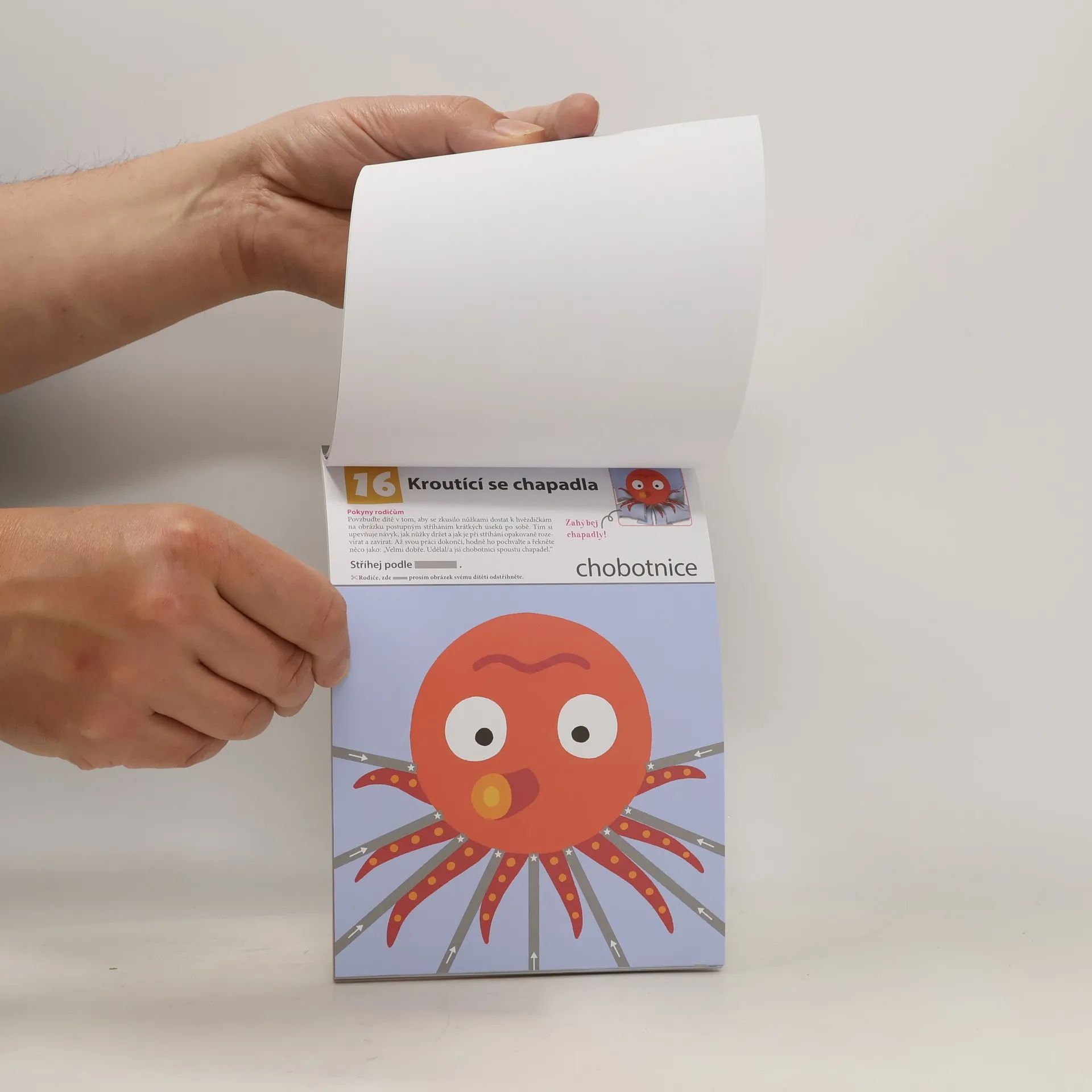 Možná si myslíte, že dát dětem do ruky nůžky není bezpečné, ale už jen z tohoto důvodu je velmi důležité naučit je, jak správně s nůžkami zacházet. Jednoduchý design tohoto pracovního sešitu může pomoci i teprve dvouletým dětem naučit se důležitým základním dovednostem a užít si při tom spoustu zábavy. Sešit je sestaven tak, aby si vaše dítě spolu s rozvíjením jemné motoriky a zdokonalením práce s nůžkami osvojilo i novou slovní zásobu. Při stříhání podél rovných a zakřivených čar či vystřihování kruhů a zvířat si děti spojí slova jako "rovný" či "zakřivený" s tvary, které představují. Úkoly v tomto sešitu velmi podněcují dětskou tvořivost a schopnost dotvářet a skládat různé tvary.
