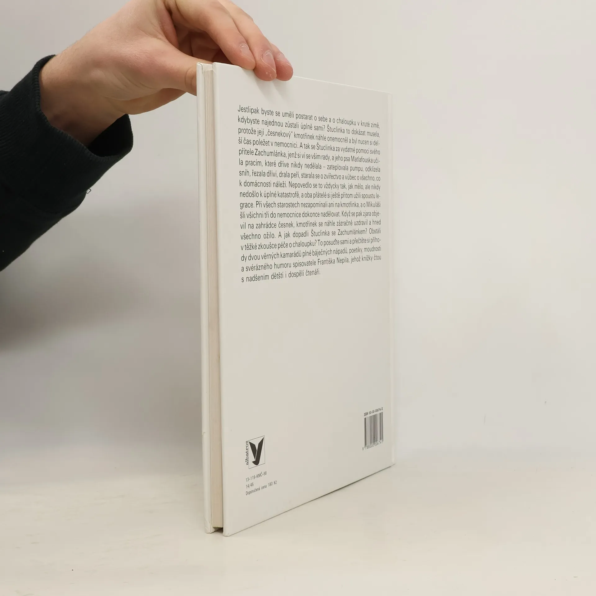 Zimní příběh o dvou šikovných dětech, které si dokáží samy poradit, když kmotřínek, který se o ně stará, nečekaně onemocní, protože mu došel česnek, a musí do nemocnice. Štuclinka se Zachumlánkem občas s obtížemi, ale vždy vtipně a se spoustou fantazie vyřeší, jak zateplit pumpu, jak zachránit dusící se kapry, jak porazit soušku, jak sestrojit dřevošmik, jak rozveselit kmotřínka mikulášskou nadílkou i jak napéct cukroví. Když je toho na ně moc, pomáhá jim pejsek Matlafousek, hajný s hajnou, která nosí v hlavě snad všechny svaté z kalendáře, i hodný pan doktor se sestřičkou. Nenapodobitelné vypravěčské umění Františka Nepila v tomto půvabném, laskavém, nápaditém a hlavně ryze českém příběhu potěší nejen děti, ale i jejich rodiče a prarodiče.