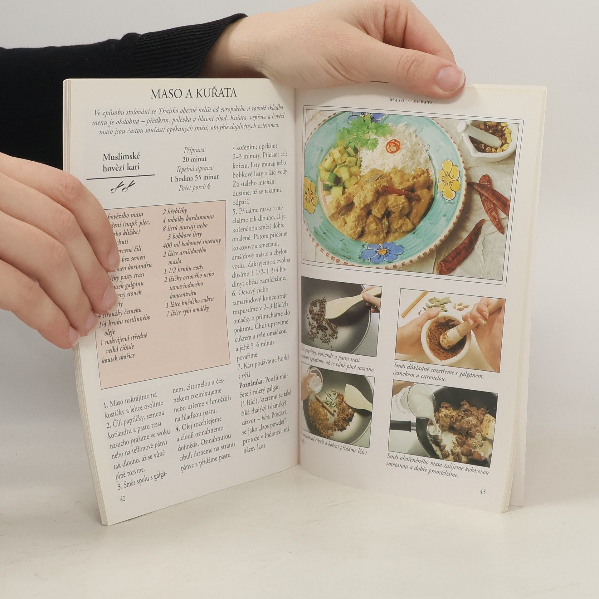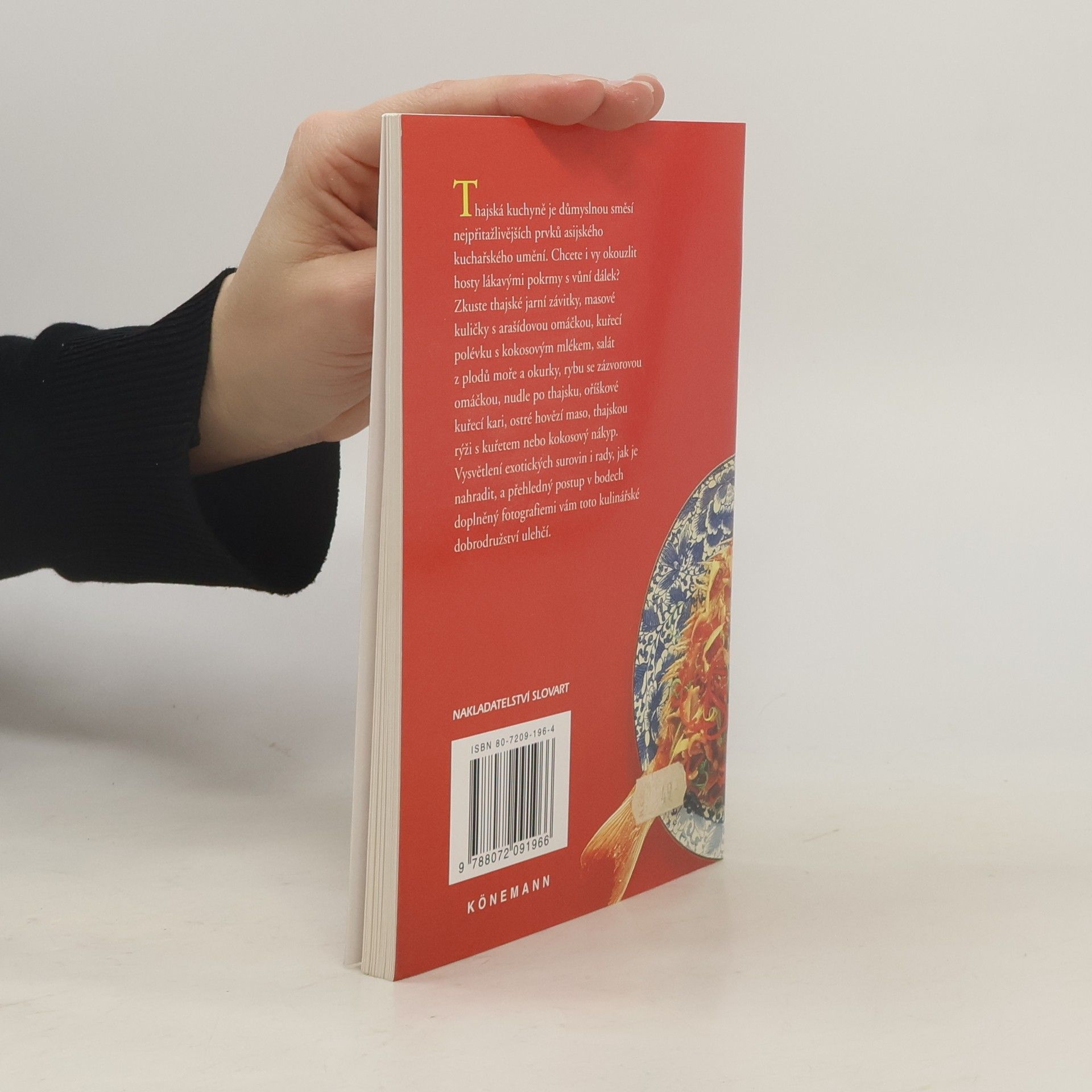 Kapitoly: předkrmy, polévky a saláty, plody moře, maso a kuřata, dezerty. Slovníček thajských pokrmů.