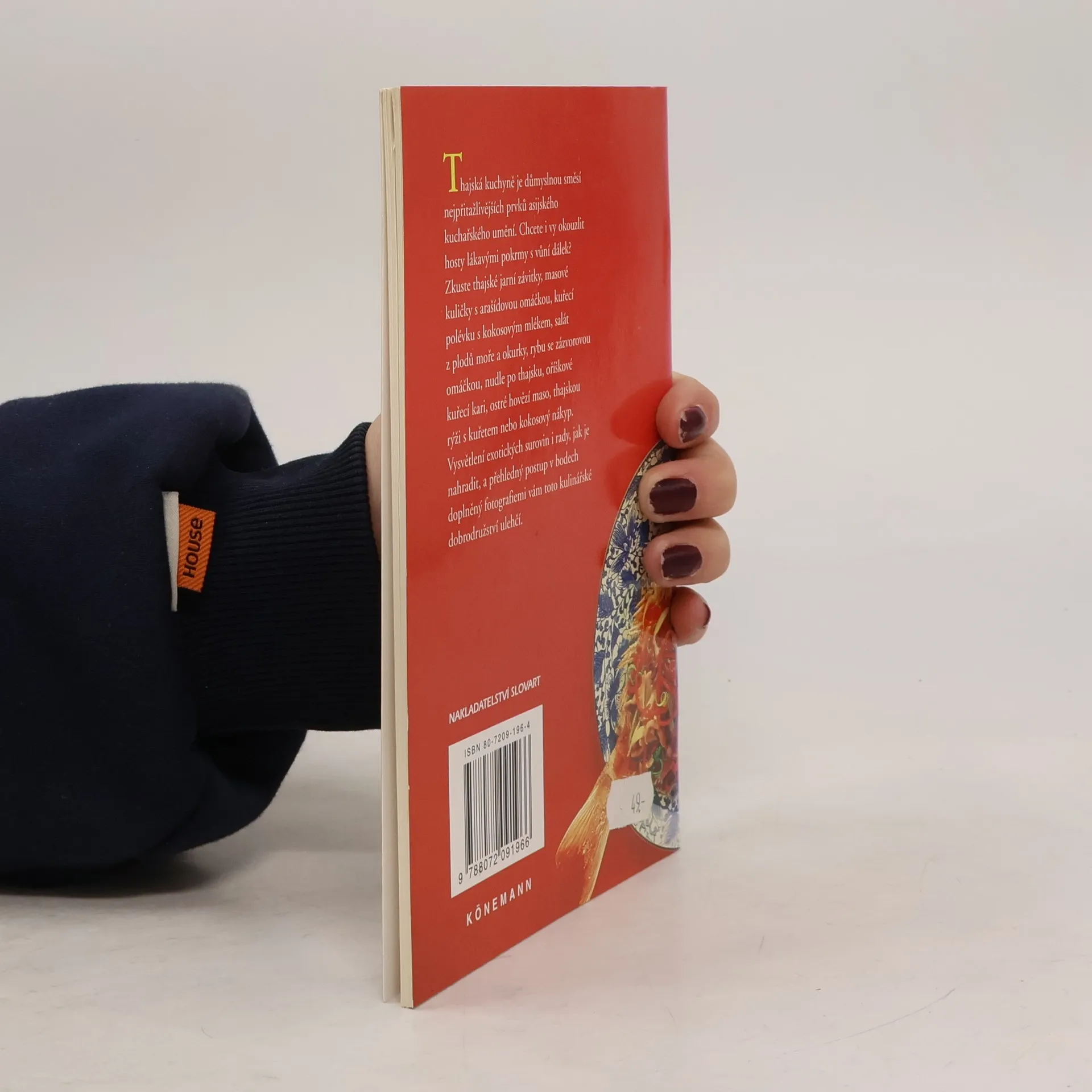 Kapitoly: předkrmy, polévky a saláty, plody moře, maso a kuřata, dezerty. Slovníček thajských pokrmů.