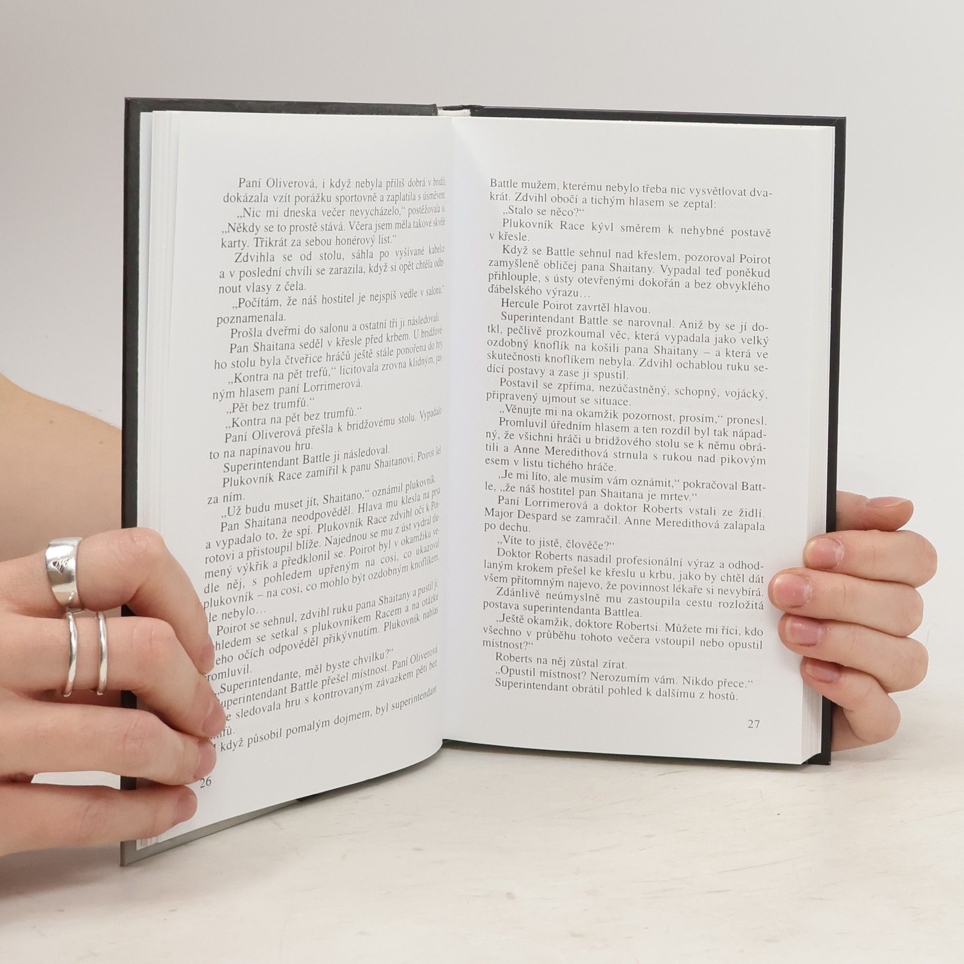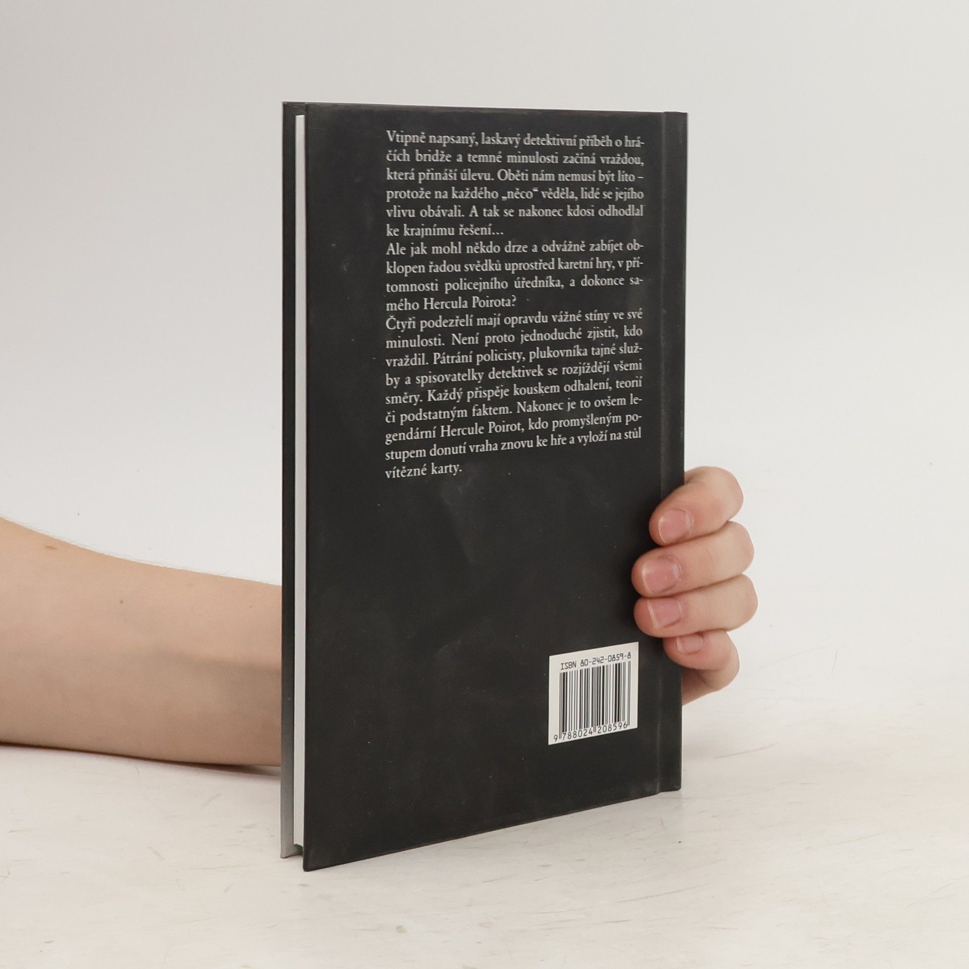 Vtipně napsaný, laskavý detektivní příběh o hráčích bridže a temné minulosti začíná vraždou, která přináší úlevu. Oběti nám nemusí být líto – protože na každého „něco“ věděla, lidé se jejího vlivu obávali. A tak se nakonec kdosi odhodlal až ke krajnímu řešení… Ale jak mohl někdo drze a odvážně zabíjet, obklopen řadou svědků, uprostřed karetní hry, v přítomnosti policejního úředníka, a dokonce samého Hercula Poirota? Čtyři podezřelí mají opravdu vážné stíny ve své minulosti. Není proto jednoduché zjistit, kdo vraždil kdysi i nyní. Pátrání policejního úředníka, plukovníka tajné služby a spisovatelky detektivek se rozjíždějí všemi směry. Každý přispěje kouskem odhalení, teorií či podstatným faktem. Nakonec je to ovšem Hercule Poirot, kdo promyšleným postupem donutí vraha znovu ke hře a vyloží na stůl vítězné karty.... celý text