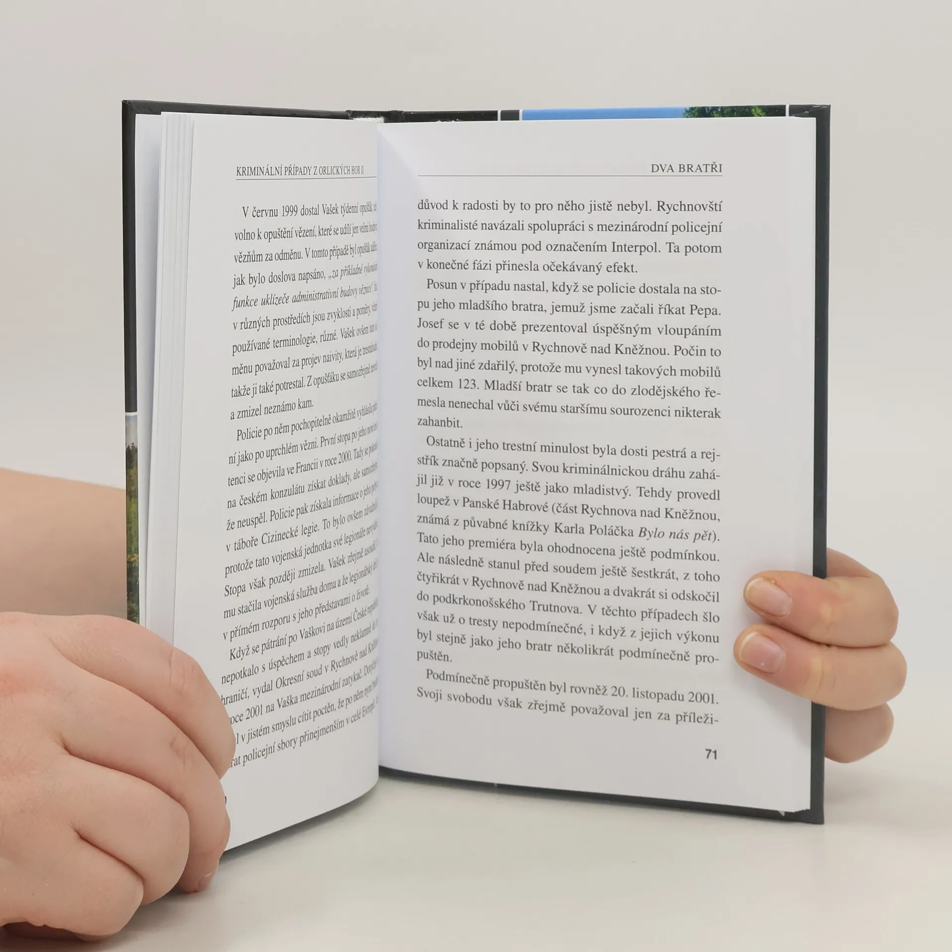 Po úspěšném vydání Kriminálních případů z Orlických hor následuje druhá knížka s touto tématikou. Šestnáctiletá zkušenost bývalého šéfa rychnovské kriminálky plk. JUDr. Zdeňka Hlaváčka pro ni poskytla dostatek podkladů. Některé případy jsou mimořádně závažné, jde například o trojnásobnou vraždu pachatele z Lípy nad Orlicí, brutální vraždu starostky obce Liberk, či velmi komplikovaný případ sebevraždy v Kostelci nad Orlicí. Nechybí ani nesnadné rozhodování o vhodném okamžiku policejního zásahu, popsané v příběhu Hranice rizika. U některých popisovaných událostí zvolili autoři poněkud lehčí tón se známkami humoru. Dozvíte se o děsivě působícím psu, který se nakonec ukázal jako kamarádské zvíře i o tom, že kriminalisty může pronásledovat docela obyčejná smůla, nebo o milovnících bronzových plastik, které z uměleckého díla zajímal jen materiál. Kniha přináší nejen napětí, ale také sondu do práce kriminalistů, kteří se starají o bezpečnost kraje pod Orlickými horami. Stejně jako první díl Kriminálních případů z Orlických hor, který se zaslouženě těšil velkému zájmu čtenářů, nezůstává ani další pokračování nic dlužné zajímavému a poutavému čtenářskému zážitku.