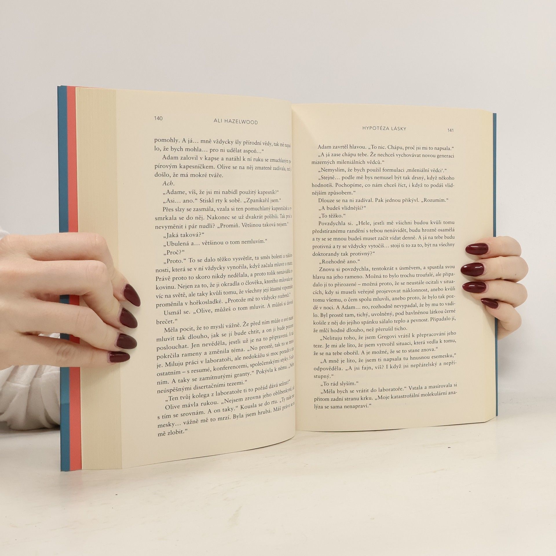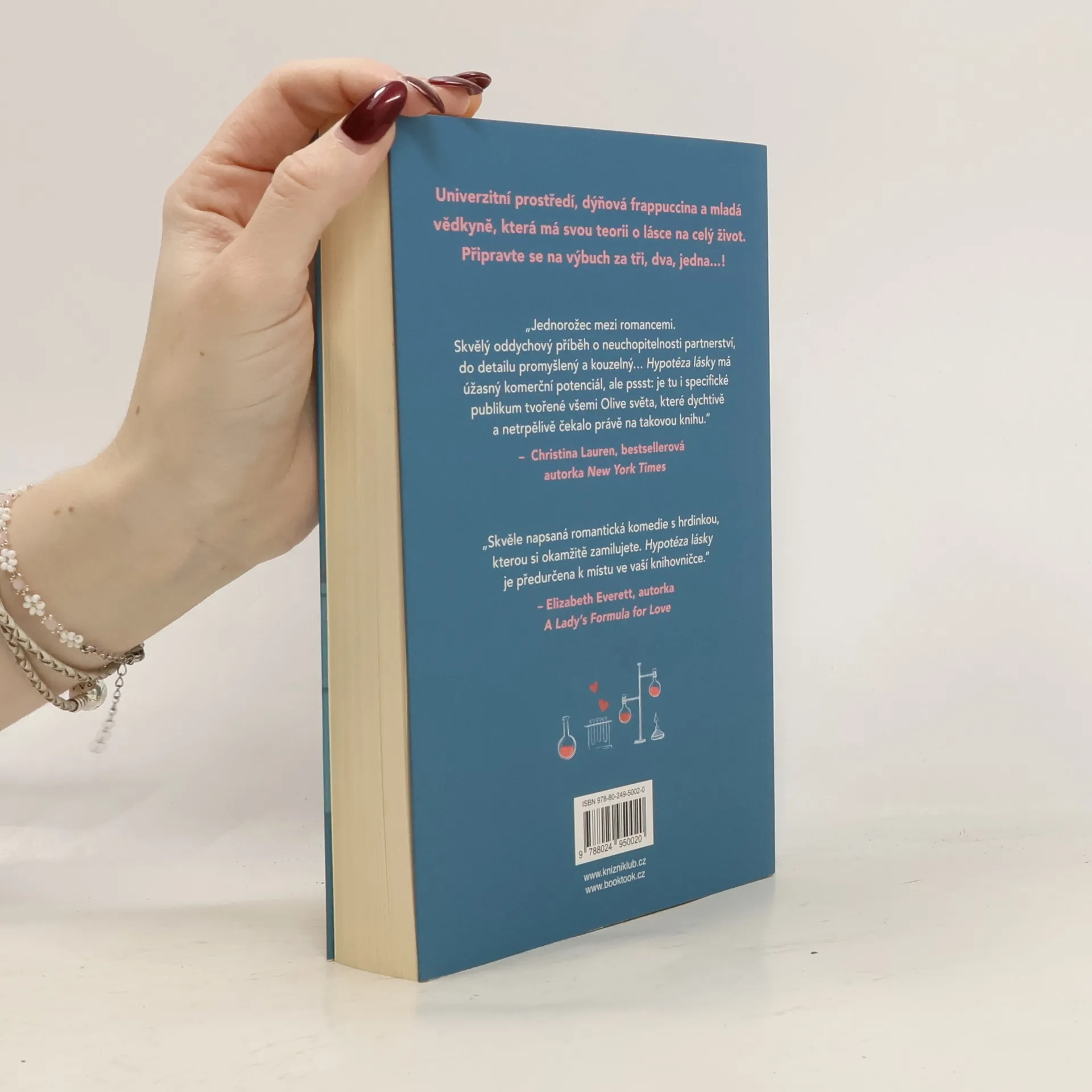 Romantická komedie, která zbořila sociální sítě! Olive je doktorandka na Stanfordu. Na trvalé romantické vztahy příliš nevěří, zato její nejlepší kamarádka ano. Takže pokud ji chce přesvědčit, že s někým randí a její milostný život nabral správný směr, musí na to jít chytře. Vědci totiž potřebují důkazy. Proto Olive, jako každá jiná sebevědomá bioložka, zpanikaří a políbí prvního muže, na kterého narazí – Adama Carlsena. Mladý, v oboru uznávaný profesor má pověst přísného školitele. Byl tak jejich polibek největší chybou, kterou Olive v životě udělala, nebo se tohle setkání může vyvinout v něco víc? Kniha obsahuje také bonusovou kapitolu.