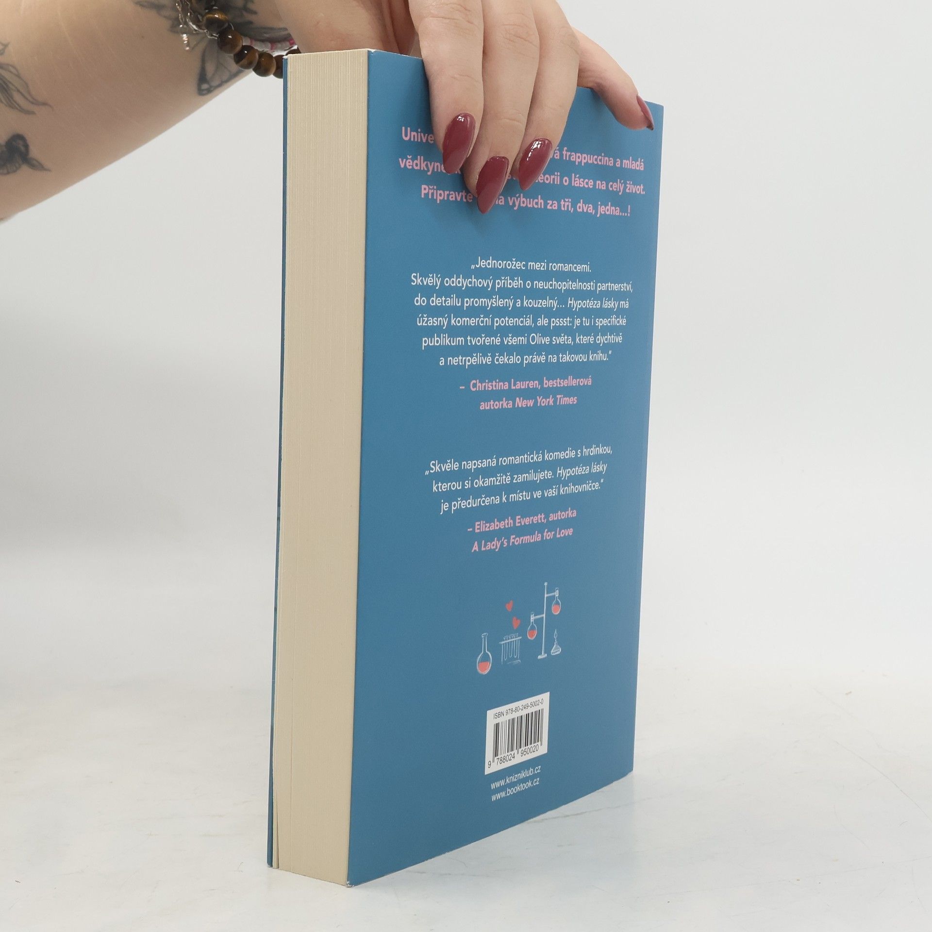 Romantická komedie, která zbořila sociální sítě! Olive je doktorandka na Stanfordu. Na trvalé romantické vztahy příliš nevěří, zato její nejlepší kamarádka ano. Takže pokud ji chce přesvědčit, že s někým randí a její milostný život nabral správný směr, musí na to jít chytře. Vědci totiž potřebují důkazy. Proto Olive, jako každá jiná sebevědomá bioložka, zpanikaří a políbí prvního muže, na kterého narazí – Adama Carlsena. Mladý, v oboru uznávaný profesor má pověst přísného školitele. Byl tak jejich polibek největší chybou, kterou Olive v životě udělala, nebo se tohle setkání může vyvinout v něco víc? Kniha obsahuje také bonusovou kapitolu.