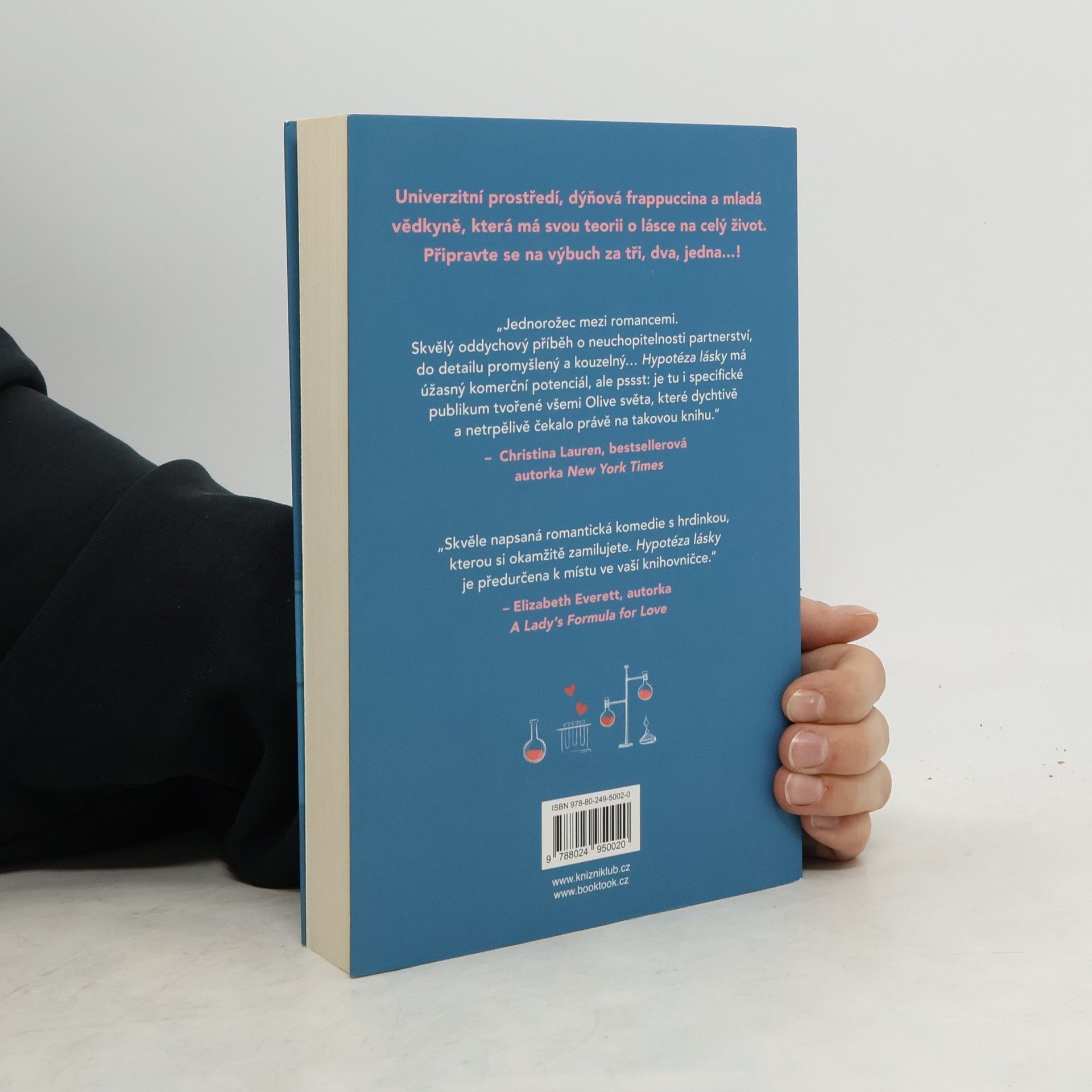 Romantická komedie, která zbořila sociální sítě! Olive je doktorandka na Stanfordu. Na trvalé romantické vztahy příliš nevěří, zato její nejlepší kamarádka ano. Takže pokud ji chce přesvědčit, že s někým randí a její milostný život nabral správný směr, musí na to jít chytře. Vědci totiž potřebují důkazy. Proto Olive, jako každá jiná sebevědomá bioložka, zpanikaří a políbí prvního muže, na kterého narazí – Adama Carlsena. Mladý, v oboru uznávaný profesor má pověst přísného školitele. Byl tak jejich polibek největší chybou, kterou Olive v životě udělala, nebo se tohle setkání může vyvinout v něco víc? Kniha obsahuje také bonusovou kapitolu.