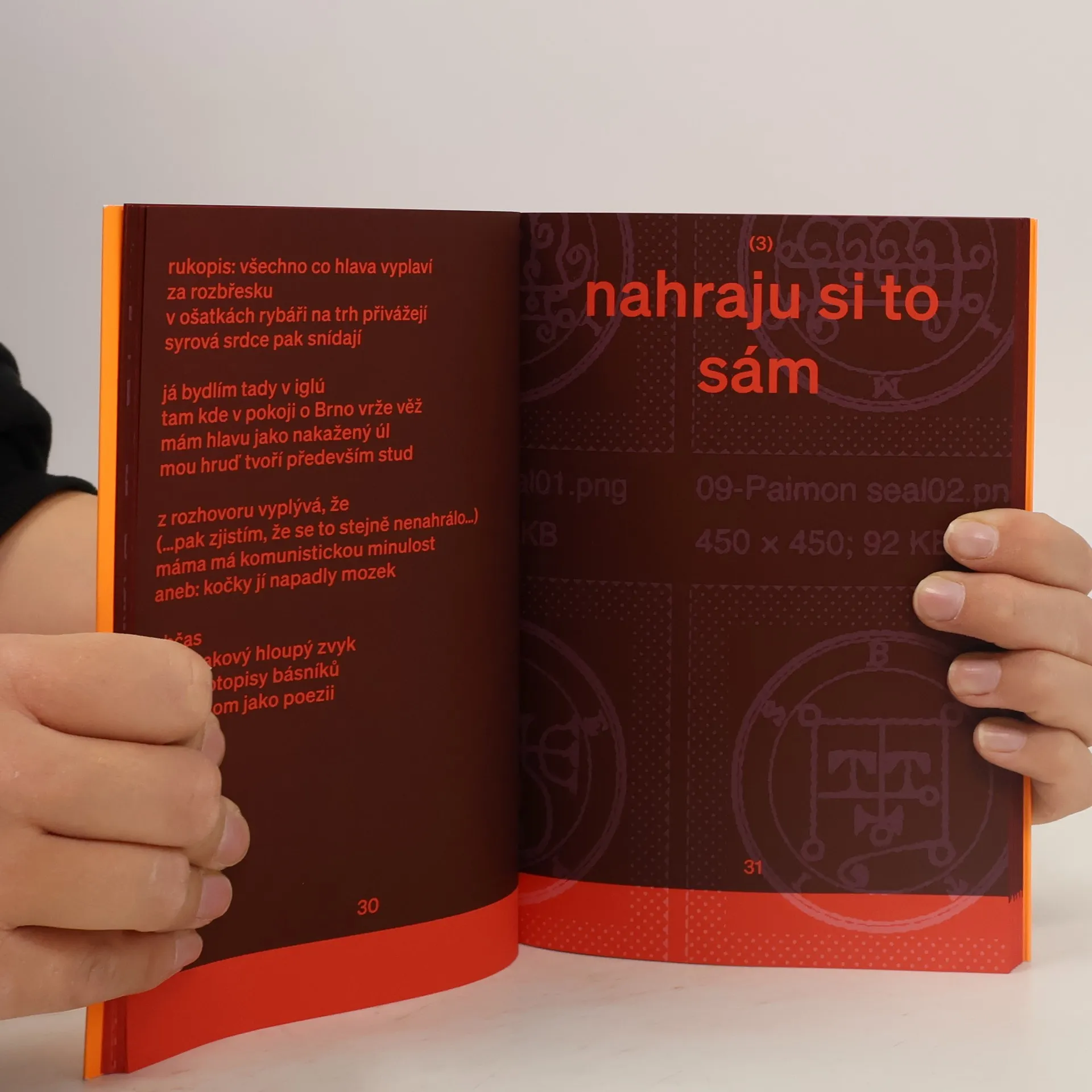 Samostatná básnická prvotina českého skladatele a hudebníka Ondřeje Kyase je sondou neobvyklých vhledů do niterných vztahů, která zdařile nahlíží na mnohdy drásavě vypjaté, až démonické citové a pocitové vazby současných životů.Toto jsou básně, které kombinují civil(ist)ní poetiku se surreálnými obrazy; děje se tak prostřednictvím asociativních jazykových her a „samplování“ textových útržků nejrůznějšího původu. Přítomen je též jakýsi humor, nadlehčující existenciální úzkost ze světa přehlceného všeobecnou skepsí a únavou, zoufale přehlušovanou maniakální aktivitou a pseudokomunikací na sociálních sítích.