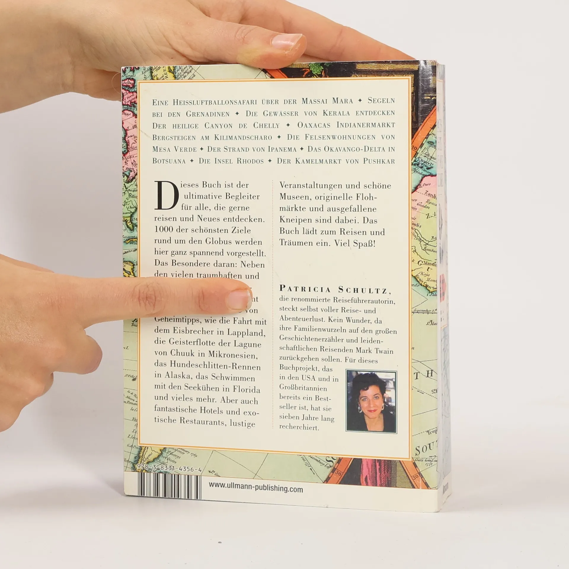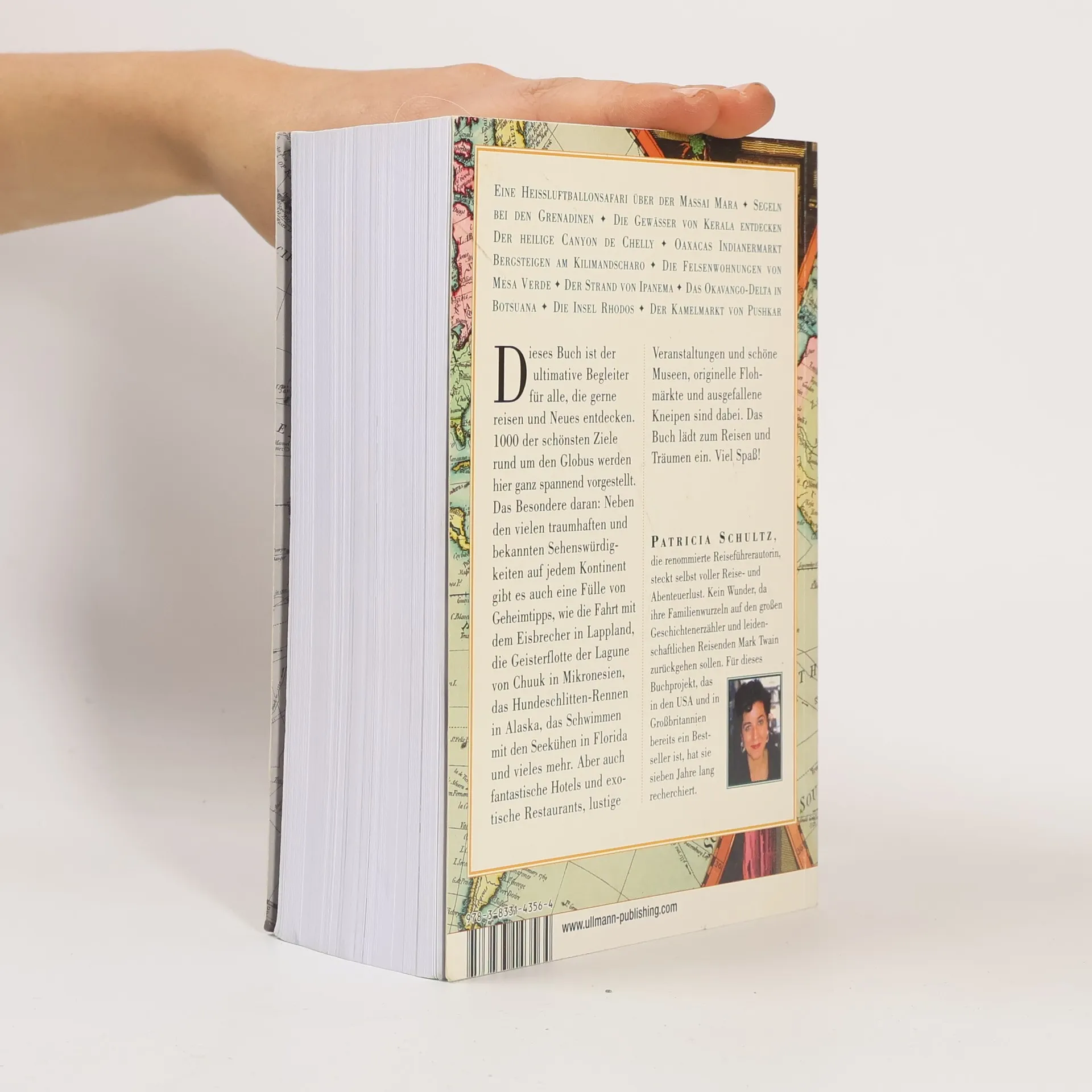 Dieses Buch ist der ultimative Begleiter für alle, die gerne reisen und Neues entdecken. 1000 der schönsten Ziele rund um den Globus werden hier ganz spannend vorgestellt. Das Besondere daran: Neben den vielen traumhaften und bekannten Sehenswürdigkeiten auf jedem Kontinent gibt es auch eine Fülle von Geheimtipps, wie die Fahrt mit dem Eisbrecher in Lappland, die Geisterflotte der Lagune von Chuuk in Mikronesien, das Schwimmen mit Seekühen in Florida und vieles mehr ... Aber auch besondere Hotels und Restaurants, schöne Museen und Veranstaltungen sind dabei!