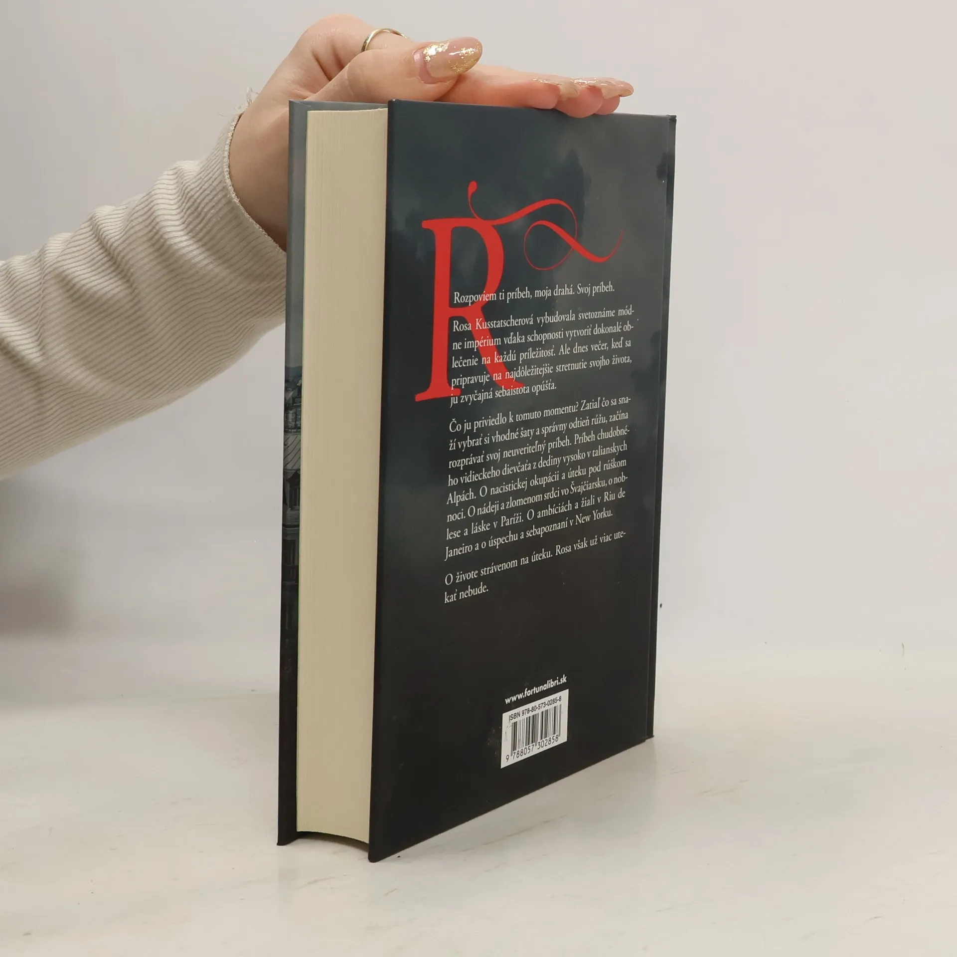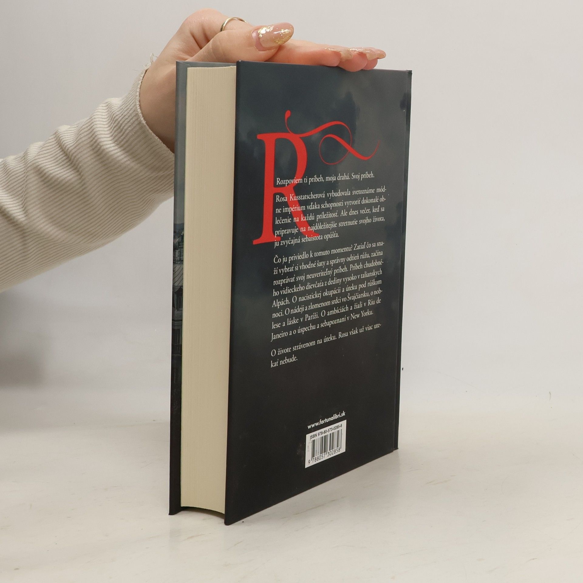 Rosa Kusstatscherová vybudovala svetoznáme módne impérium vďaka schopnosti vytvoriť dokonalé oblečenie na každú príležitosť. Ale dnes večer, keď sa pripravuje na najdôležitejšie stretnutie svojho života, ju jej zvyčajná sebaistota opúšťa. Čo ju priviedlo k tomuto momentu?Zatiaľ čo sa snaží vybrať si vhodné šaty a správny odtieň rúžu, začína rozprávať svoj neuveriteľný príbeh. Príbeh chudobného vidieckeho dievčaťa z dediny vysoko v talianskych Alpách. O nacistickej okupácii a úteku pod rúškom noci. O nádeji a zlomenom srdci vo Švajčiarsku, o noblese a láske v Paríži. O ambíciách a žiali v Riu de Janeiro a o úspechu a sebapoznaní v New Yorku. O živote strávenom na úteku. Rosa však už viac utekať nebude.