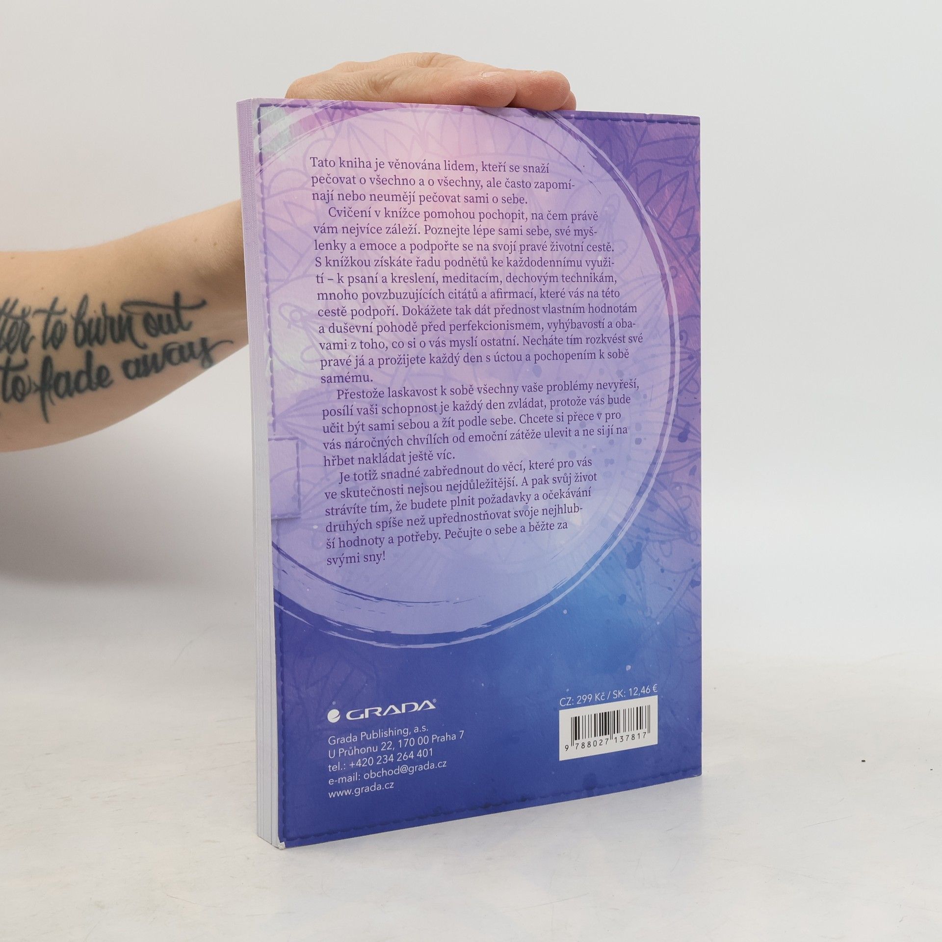 Tato kniha je věnována lidem, kteří se snaží pečovat o všechno a o všechny, ale často zapomínají nebo neumějí pečovat sami o sebe. Cvičení v knížce pomohou pochopit, na čem právě vám nejvíce záleží. Poznejte lépe sami sebe, své myšlenky a emoce a podpořte se na svojí pravé životní cestě. S knížkou získáte řadu podnětů ke každodennímu využití - k psaní a kreslení, meditacím, dechovým technikám, mnoho povzbuzujících citátů a afirmací, které vás na této cestě podpoří. Dokážete tak dát přednost vlastním hodnotám a duševní pohodě před perfekcionismem, vyhýbavosti a obavami z toho, co si o vás myslí ostatní. Necháte tím rozkvést své pravé já a prožijete každý den s úctou a pochopením k sobě samému. Přestože laskavost k sobě všechny vaše problémy nevyřeší, posílí vaši schopnost je každý den zvládat, protože vás bude učit být sami sebou a žít podle sebe. Chcete si přece v pro vás náročných chvílích od emoční zátěže ulevit a ne si jí na hřbet nakládat ještě víc. Je totiž snadné zabřednout do věcí, které pro vás ve skutečnosti nejsou nejdůležitější. A pak svůj život strávíte tím, že budete plnit požadavky a očekávání druhých spíše než upřednostňovat svoje nejhlubší hodnoty a potřeby. Pečujte o sebe a běžte za svými sny!