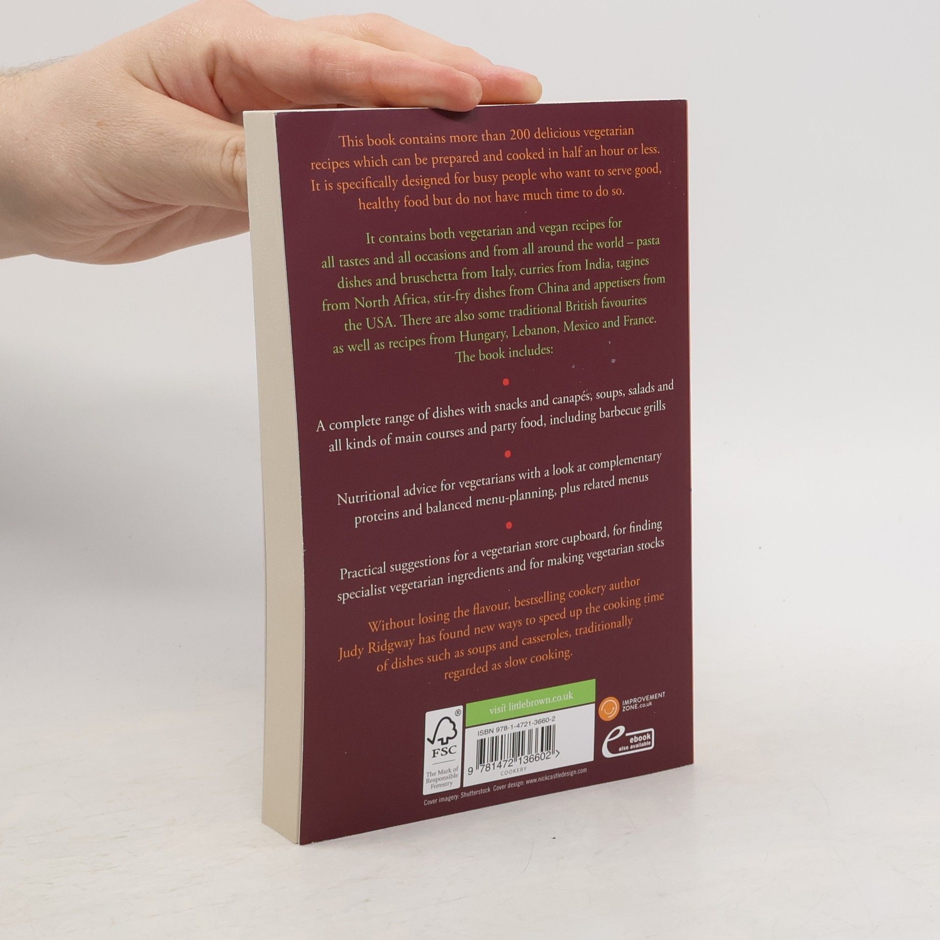 It is specifically designed for busy people who want to serve good, healthy food but do not have much time to do so. It contains both vegetarian and vegan recipes for all tastes and all occasions and from all around the world - pasta dishes and bruschetta from Italy, curries from India, tagines from North Africa, stir-fry dishes from China, and appetisers from the USA. There are also some traditional British favourites as well as recipes from Hungary, Lebanon, Mexico and France. The book includes: · A complete range of dishes with snacks and canapés, soups, salads and all kinds of main courses and party food, including barbecue grills. · Nutritional advice for vegetarians with a look at complementary proteins and balanced menu planning, plus related menus. · Practical suggestions for a vegetarian store cupboard; for finding specialist vegetarian ingredients; and for making vegetarian stocks. Without losing the flavour, bestselling cookery author, Judy Ridgway has found new ways to speed up the cooking time of dishes such as soups and casseroles, traditionally regarded as slow cooking. vegetarian stocks.